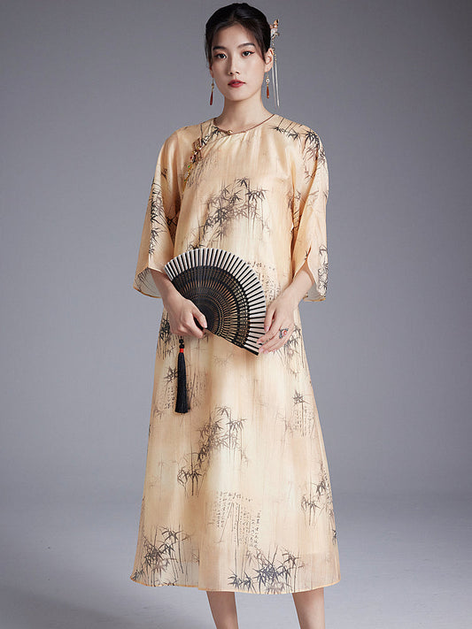 Shizhu 诗竹 - Tencel Print Loose Cheongsam Dress