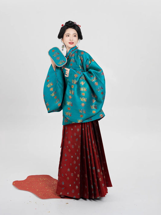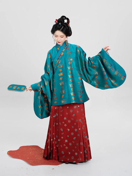 Flower Banquet 团花小宴 - Pipa Sleeve Top & Mamianqun Ming Dynasty Hanfu Set