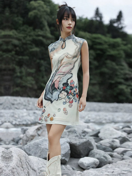 New Chinese Style Stand-Up Collar Short Dress - Chang'E
