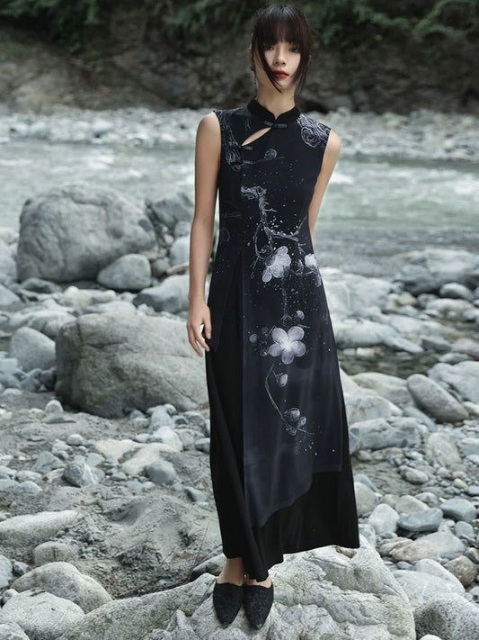 New Chinese Style Summer Slit See-Through Mesh Dress