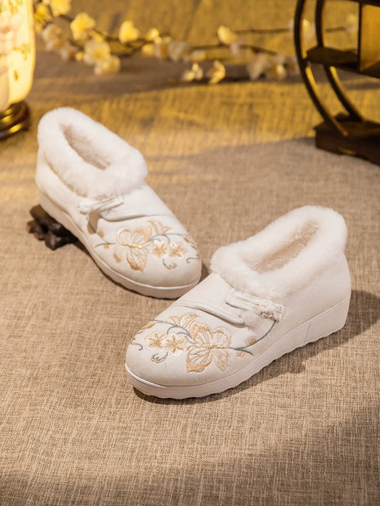 Fangyu - Furry Embroidered Hanfu Shoes for Winter