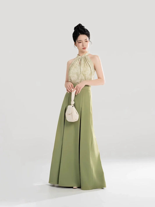 碧春居 Bi Chunju - Song Dynasty Halter-neck Sleeveless Top, Three-pleated Elastic Skirt (Preorder)