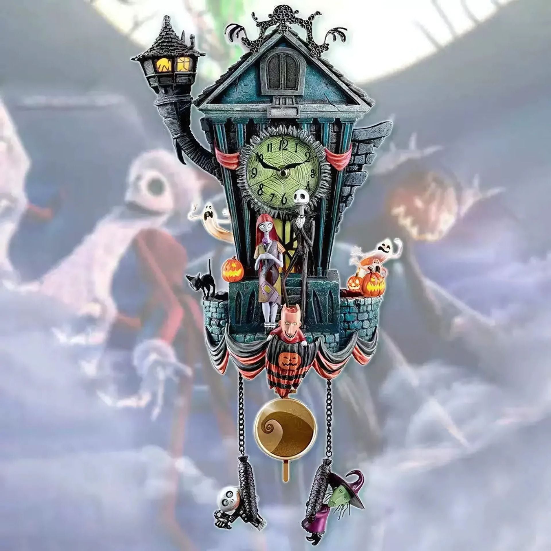 Step into the hauntingly charming world of Tim Burton’s The Nightmare Before Christmas with this handcrafted cuckoo clock. A perfect fusion of gothic artistry, moving characters, glowing LED lights, and enchanting music – it’s more than a clock, it’s a magical centerpiece for your home.