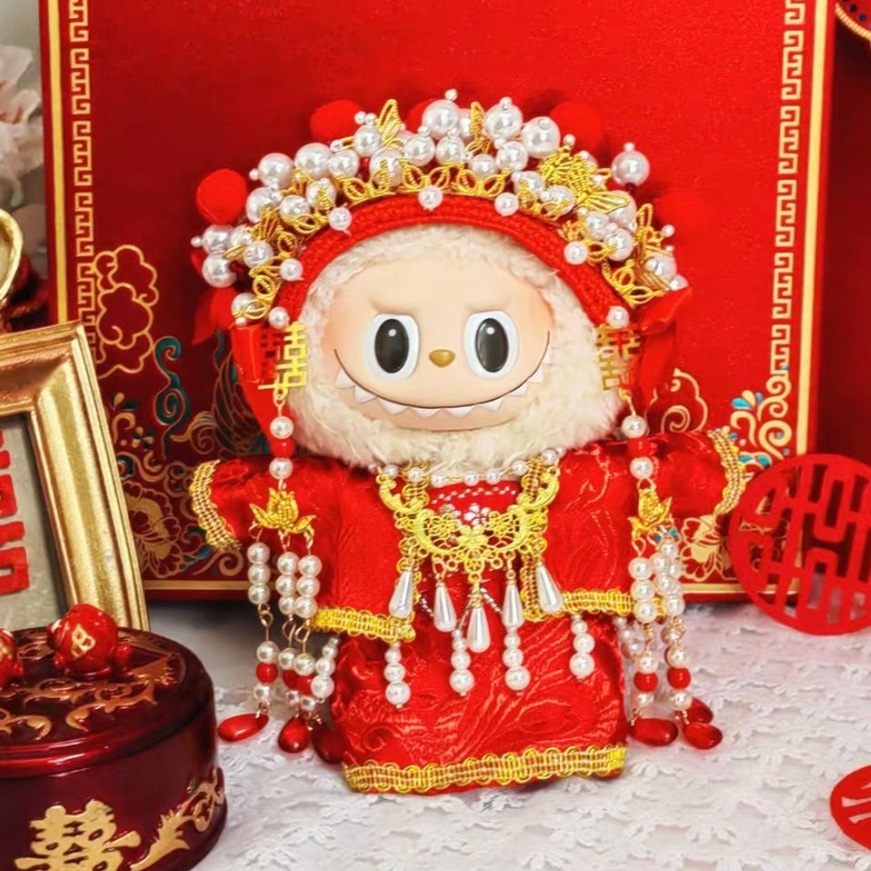 17cm Labubu Plush Doll Traditional Chinese Wedding Dress - Qunkwa