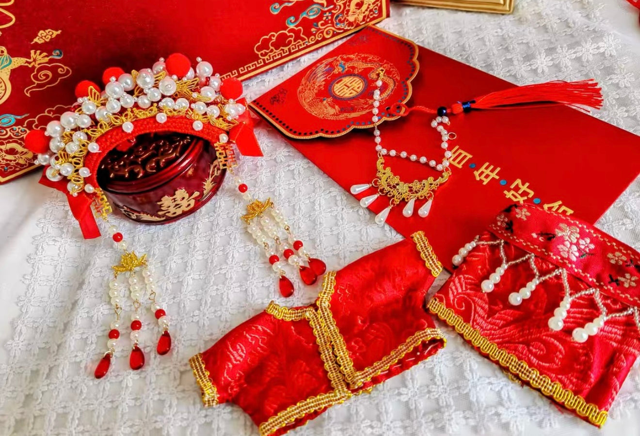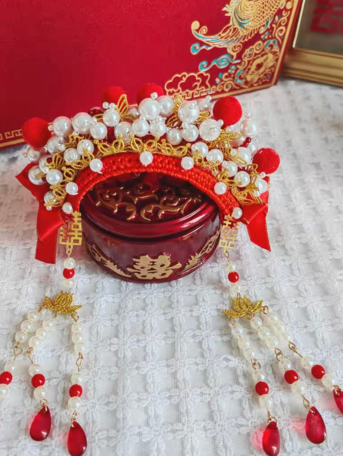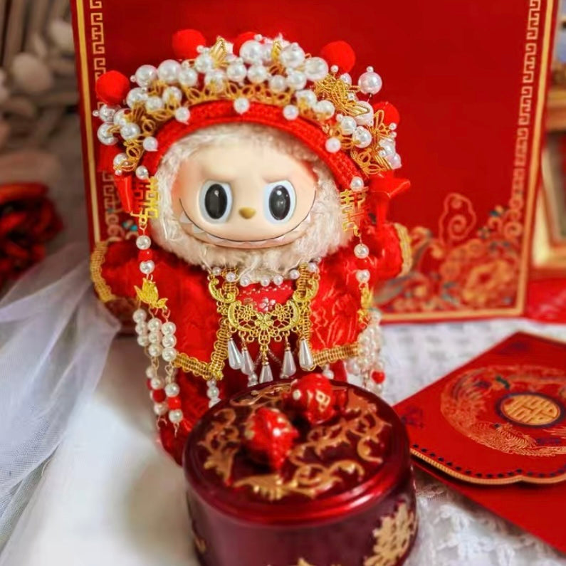 Dress your 17cm Labubu or Pop Mart Mokoko vinyl doll in this traditional Chinese wedding dress.