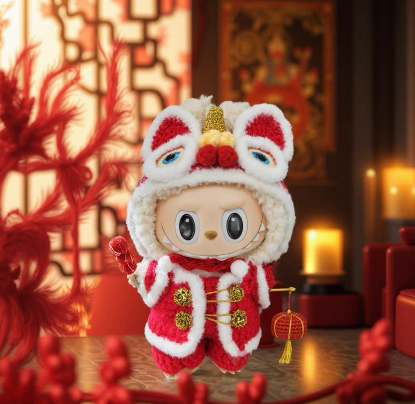 17cm Labubu Plush Doll Traditional Costume - Chinese Lions