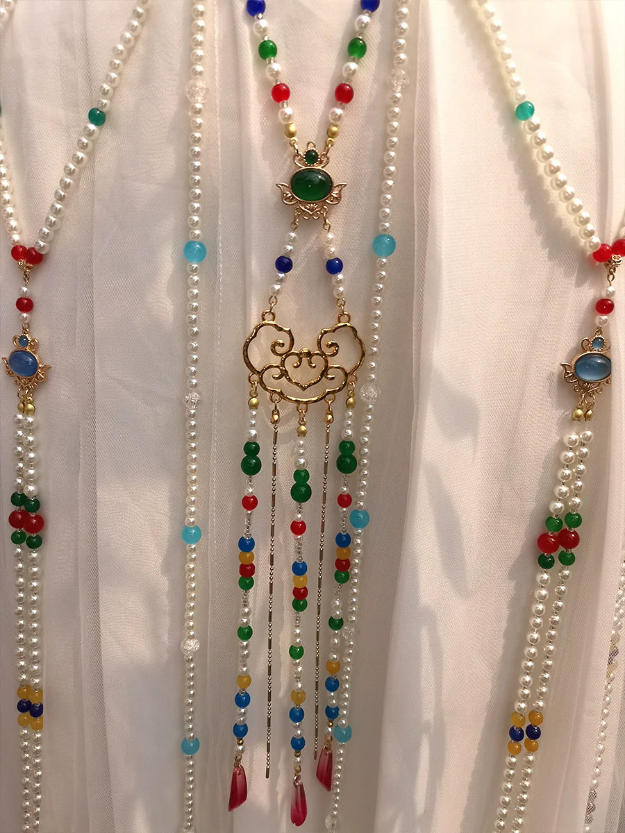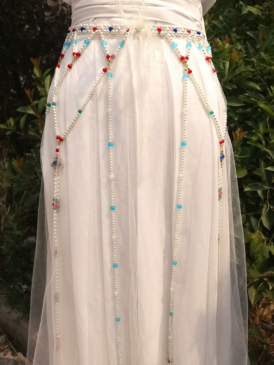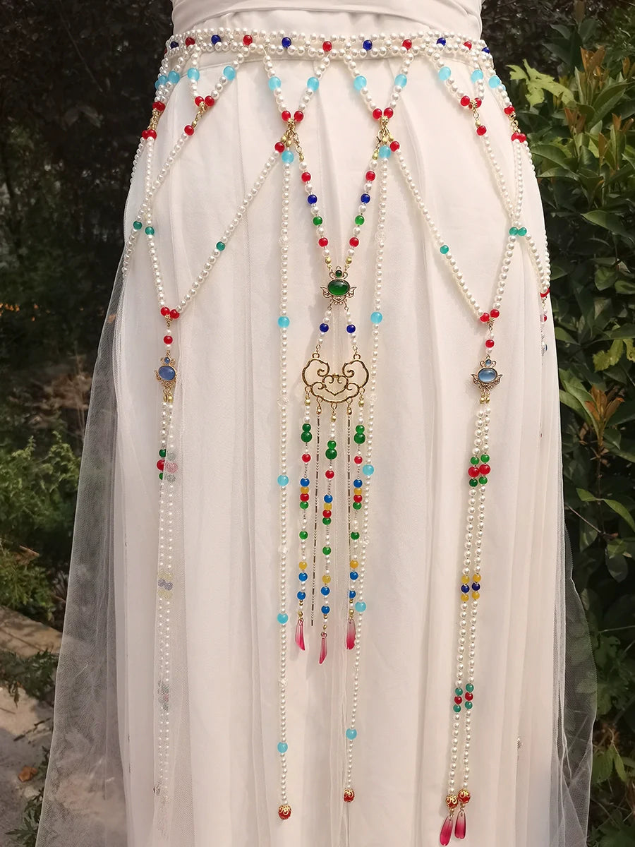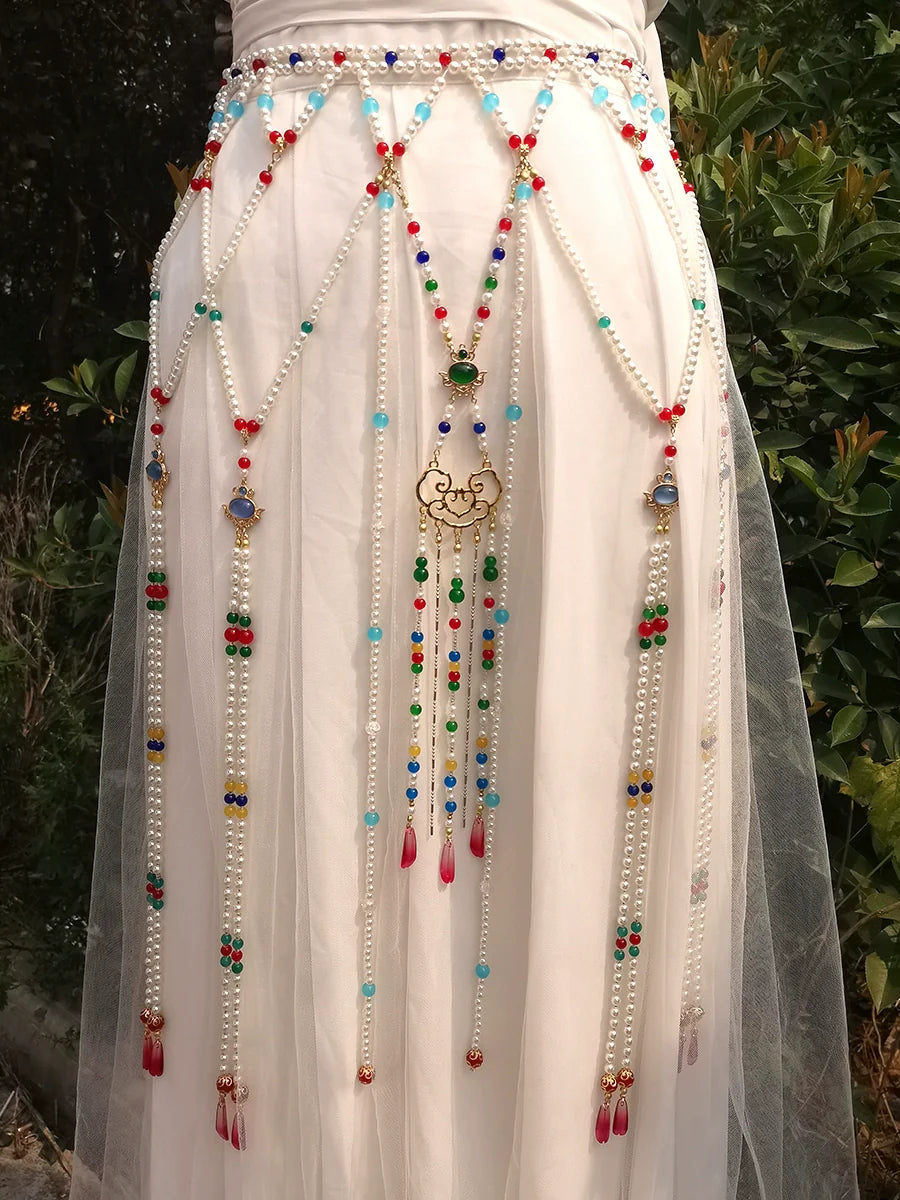 Complete your look with our Dunhuang-style beaded waist chains. Whether you're dressing for a festival, performance, cosplay, or special event, these waist accessories double as belts and accentuate your silhouette and adds a charm to Hanfu, traditional costumes, or cultural attire.