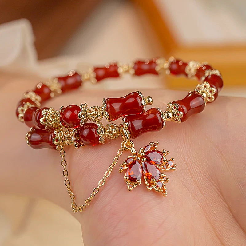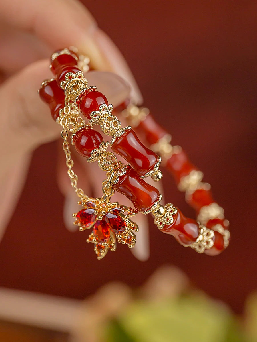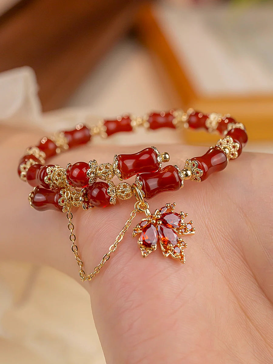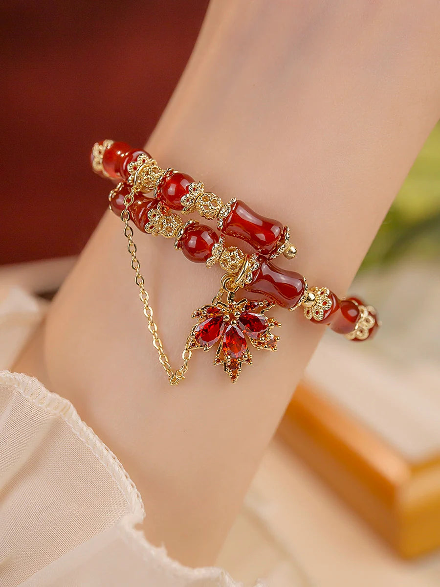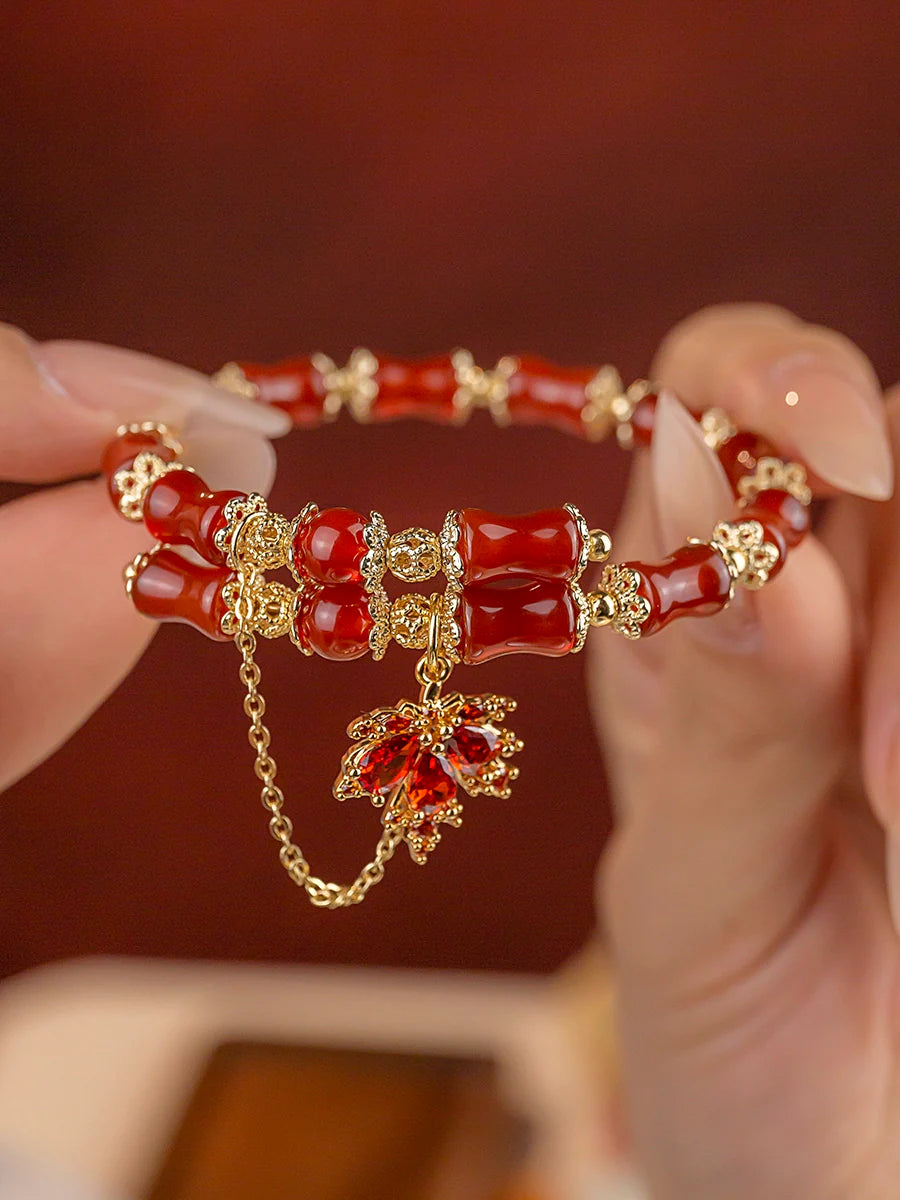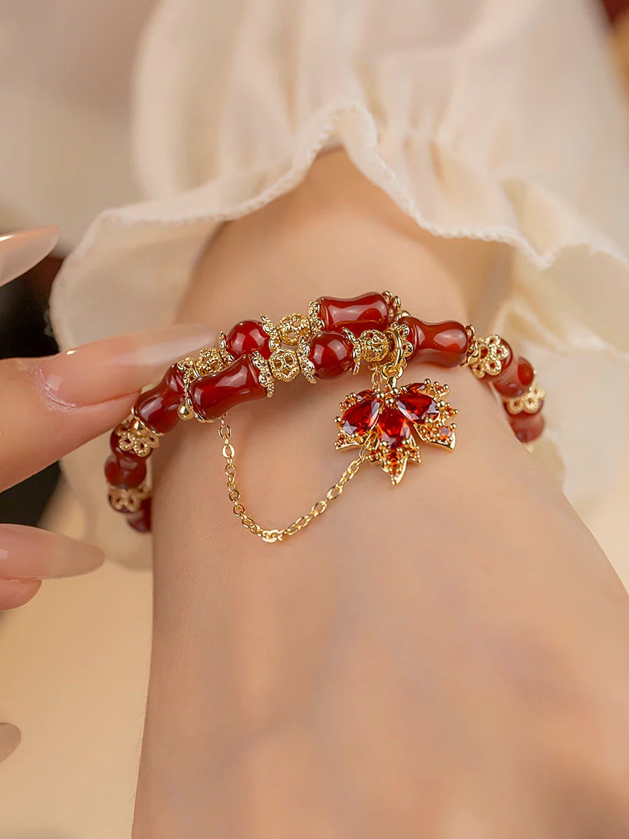Autumn Maple Leaf Ancient Red Agate Bracelet