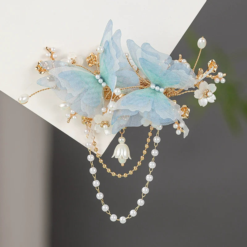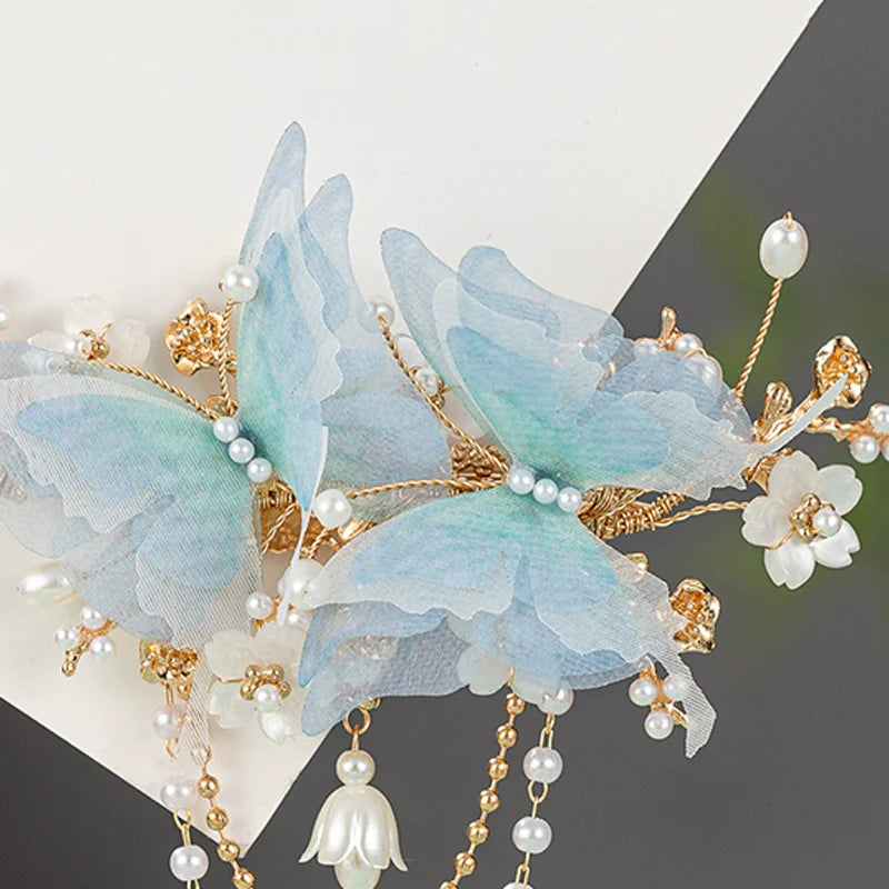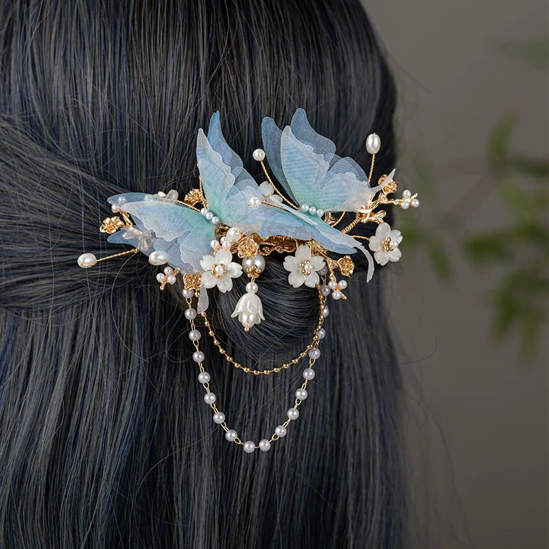 Back Hair Pin: Blue Butterflies