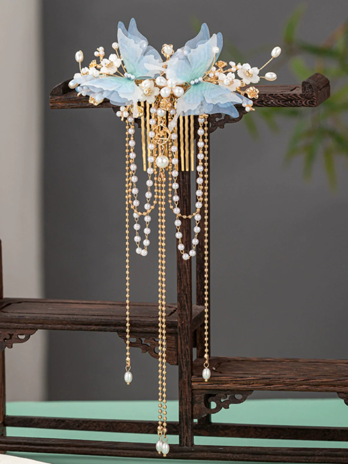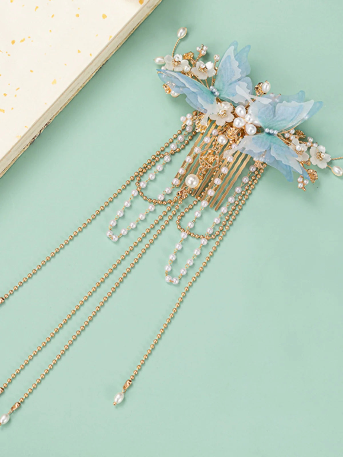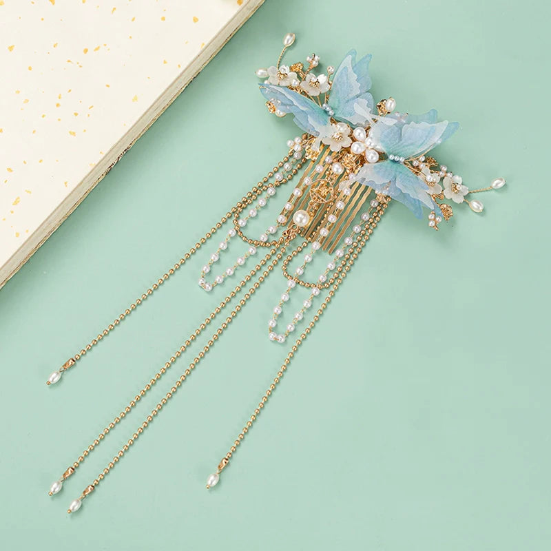 Hanfu hair accessories can vary widely in style, material, and design, but they all serve the purpose of enhancing the wearer's appearance and adding an extra touch of elegance to their hair. Some notable hair accessories commonly associated with Hanfu are hairpins (发簪, fāzān), hair combs (发篦, fābì), tassels (流苏, liúsū), hair ornaments (发髻, fājì), hairbands and headpieces (发饰, fāshì).