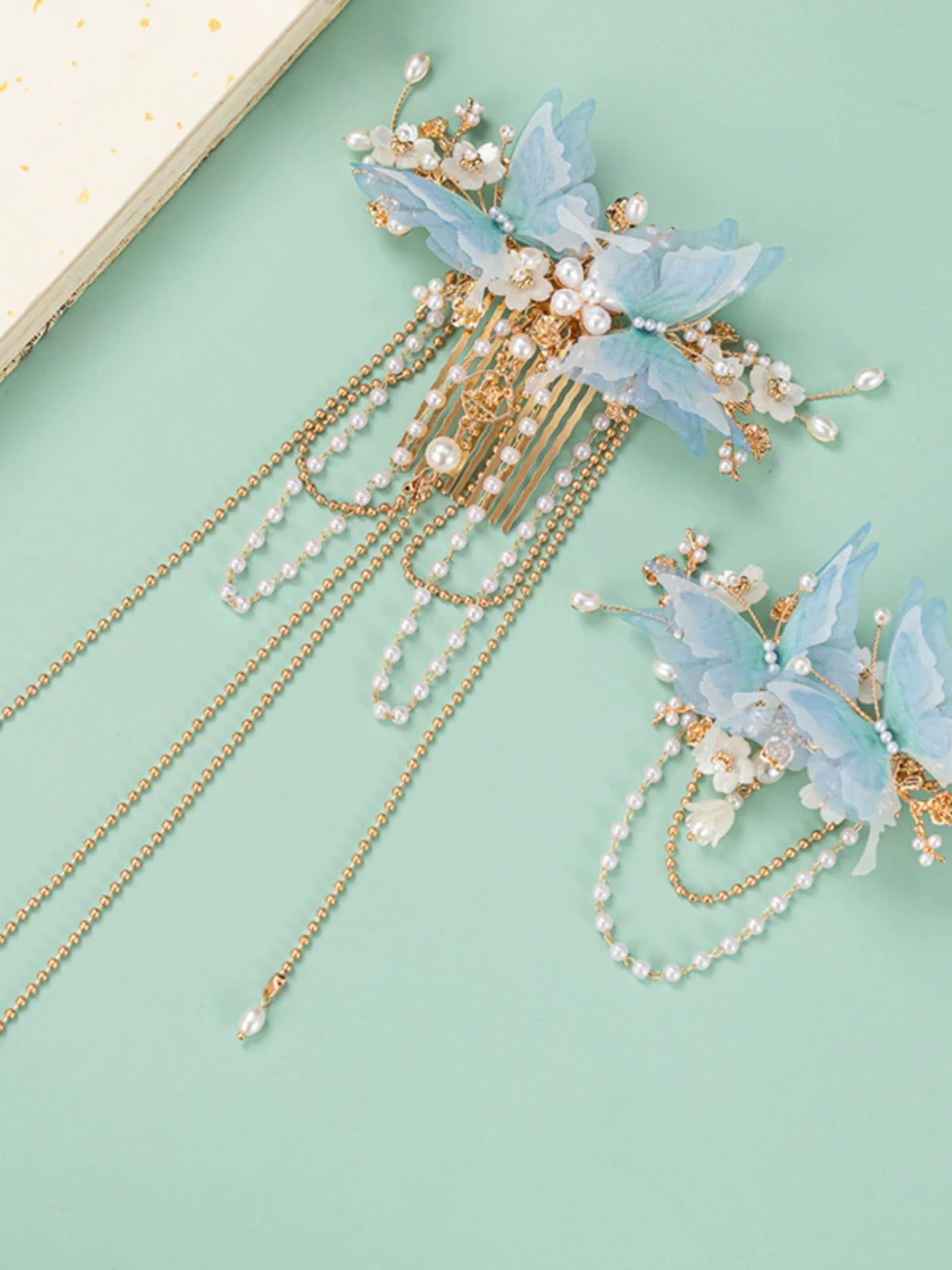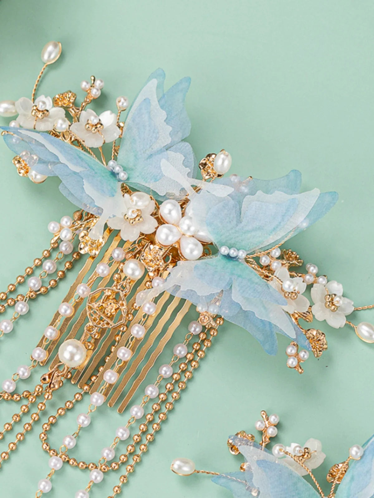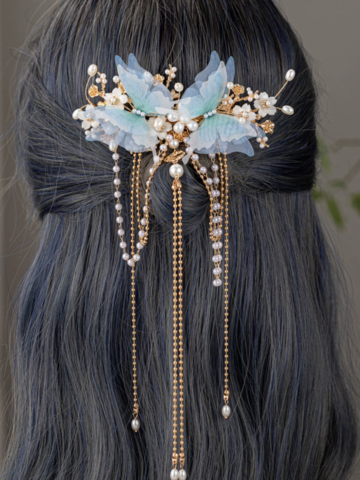 Hanfu hair accessories can vary widely in style, material, and design, but they all serve the purpose of enhancing the wearer's appearance and adding an extra touch of elegance to their hair. Some notable hair accessories commonly associated with Hanfu are hairpins (发簪, fāzān), hair combs (发篦, fābì), tassels (流苏, liúsū), hair ornaments (发髻, fājì), hairbands and headpieces (发饰, fāshì).
