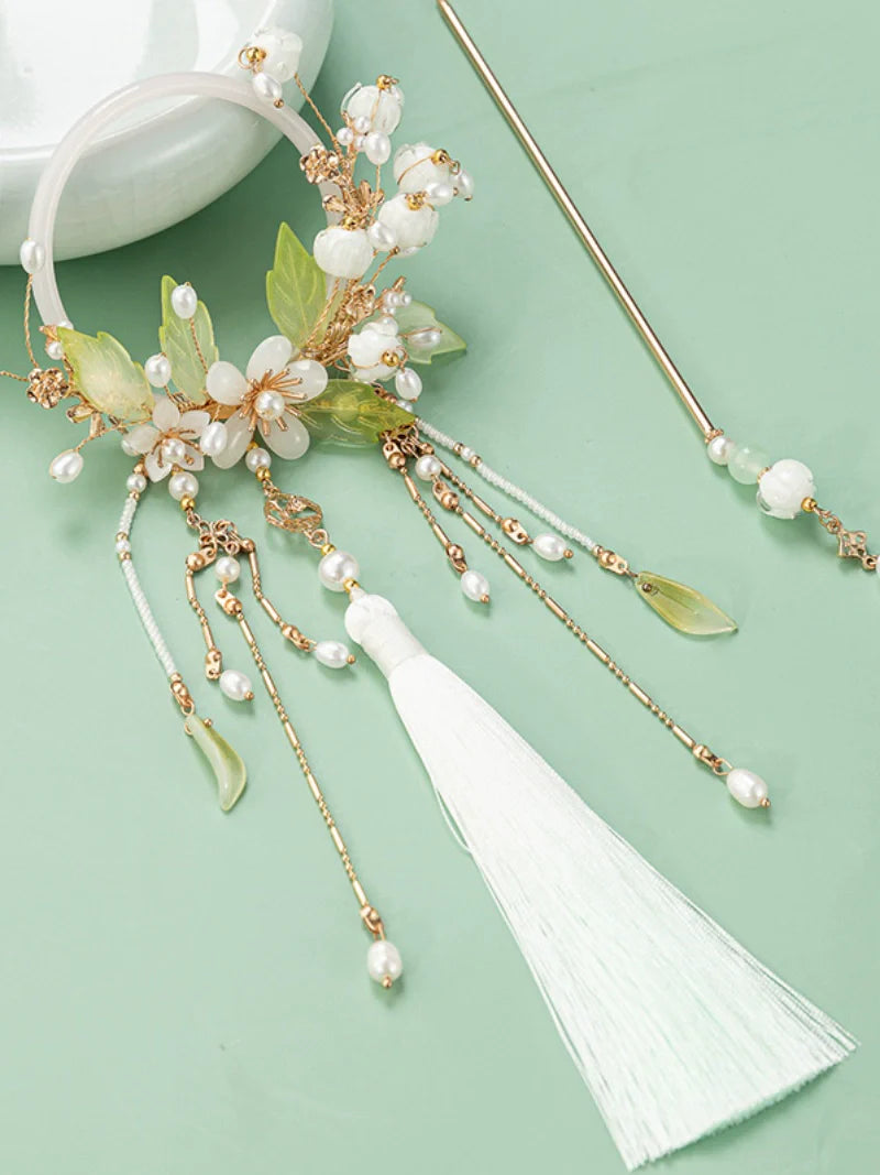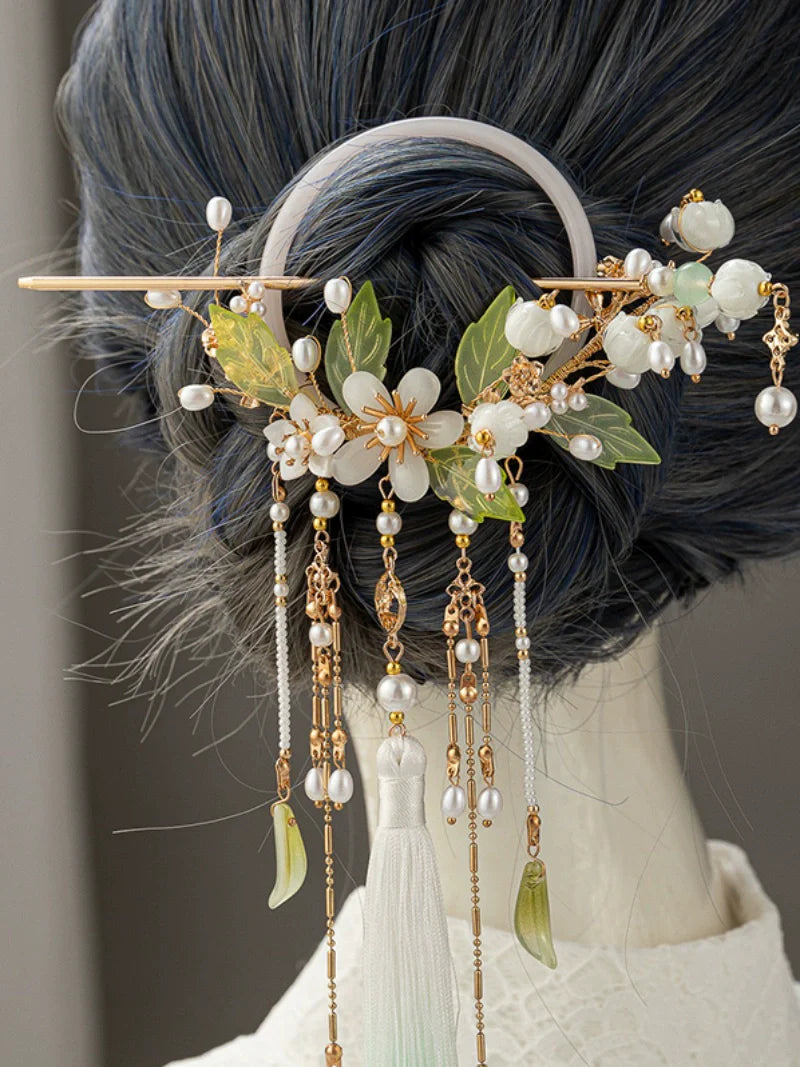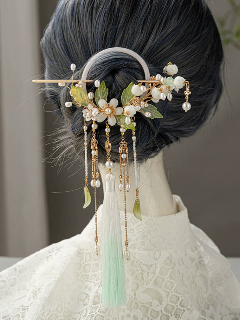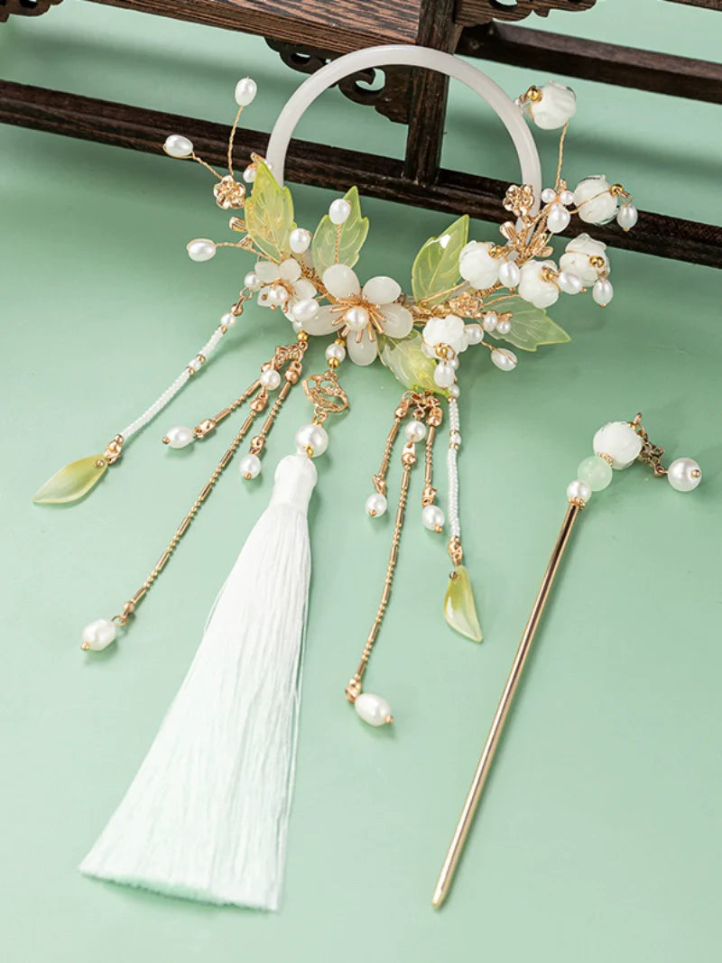 Hanfu hair accessories can vary widely in style, material, and design, but they all serve the purpose of enhancing the wearer's appearance and adding an extra touch of elegance to their hair. Some notable hair accessories commonly associated with Hanfu are hairpins (发簪, fāzān), hair combs (发篦, fābì), tassels (流苏, liúsū), hair ornaments (发髻, fājì), hairbands and headpieces (发饰, fāshì).