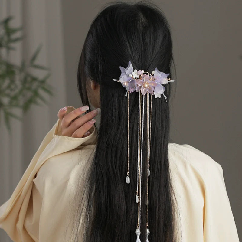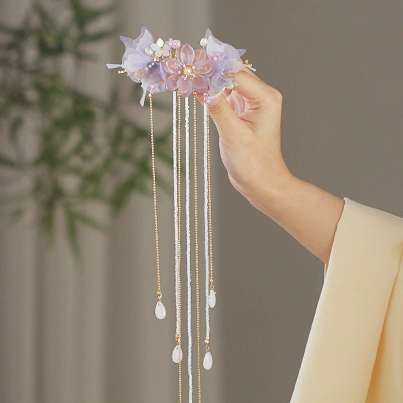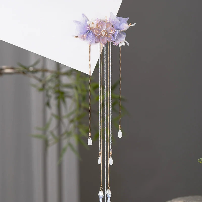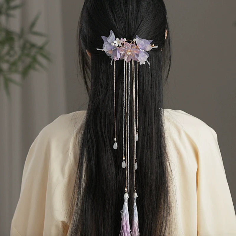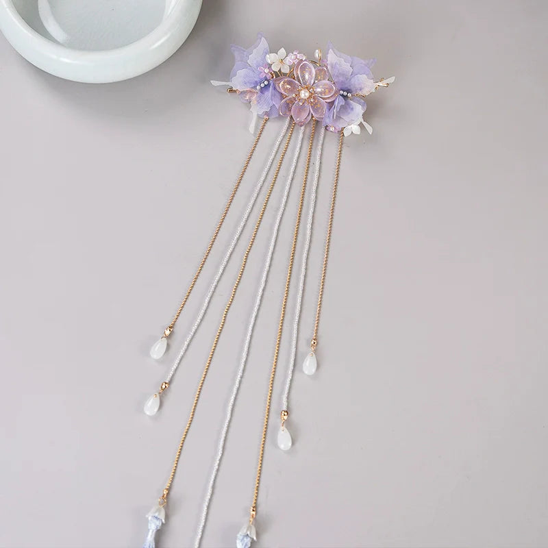 Hanfu hair accessories can vary widely in style, material, and design, but they all serve the purpose of enhancing the wearer's appearance and adding an extra touch of elegance to their hair. Some notable hair accessories commonly associated with Hanfu are hairpins (发簪, fāzān), hair combs (发篦, fābì), tassels (流苏, liúsū), hair ornaments (发髻, fājì), hairbands and headpieces (发饰, fāshì).