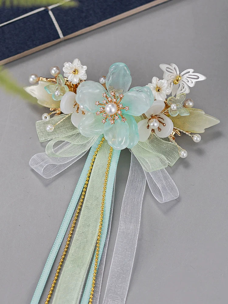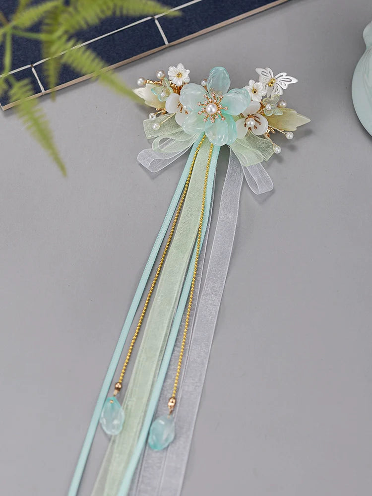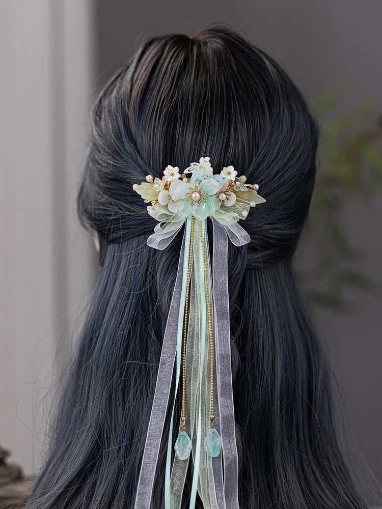 Hanfu hair accessories can vary widely in style, material, and design, but they all serve the purpose of enhancing the wearer's appearance and adding an extra touch of elegance to their hair. Some notable hair accessories commonly associated with Hanfu are hairpins (发簪, fāzān), hair combs (发篦, fābì), tassels (流苏, liúsū), hair ornaments (发髻, fājì), hairbands and headpieces (发饰, fāshì).