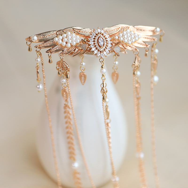 Hanfu hair accessories can vary widely in style, material, and design, but they all serve the purpose of enhancing the wearer's appearance and adding an extra touch of elegance to their hair. Some notable hair accessories commonly associated with Hanfu are hairpins (发簪, fāzān), hair combs (发篦, fābì), tassels (流苏, liúsū), hair ornaments (发髻, fājì), hairbands and headpieces (发饰, fāshì).