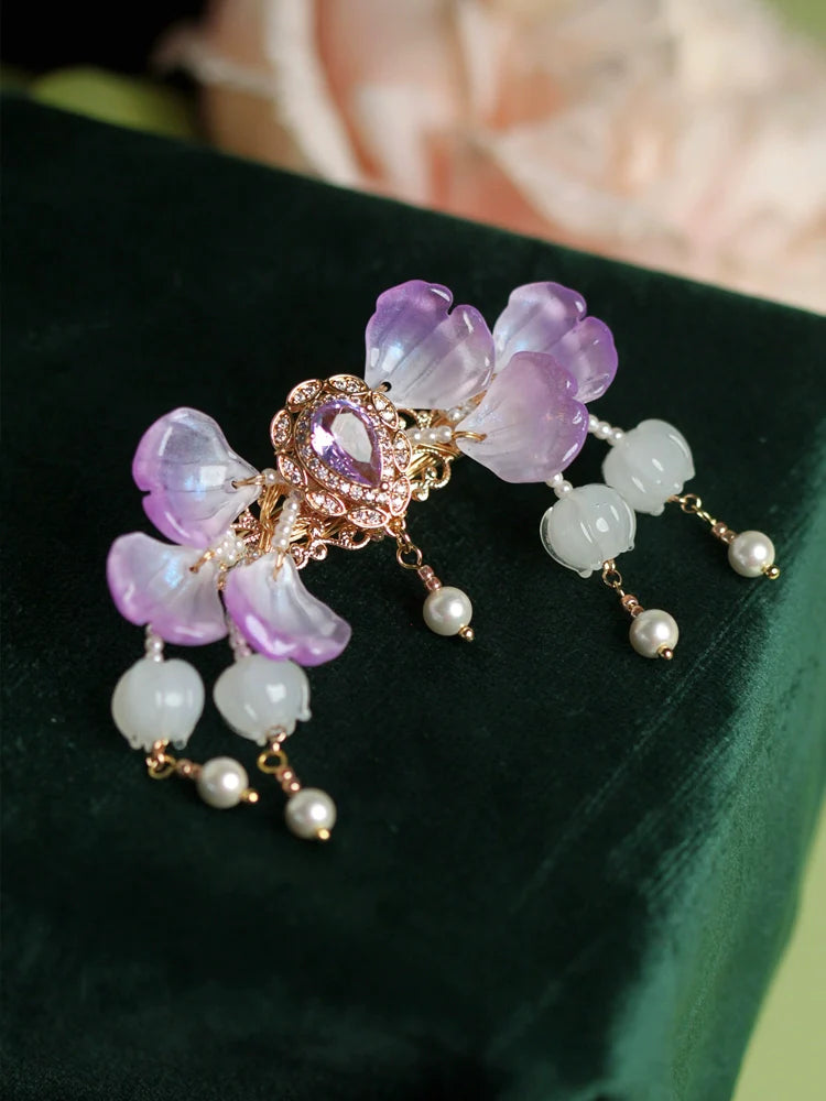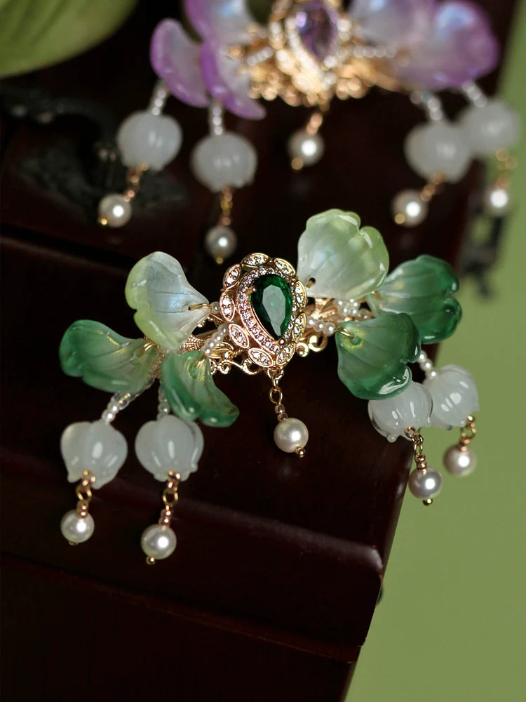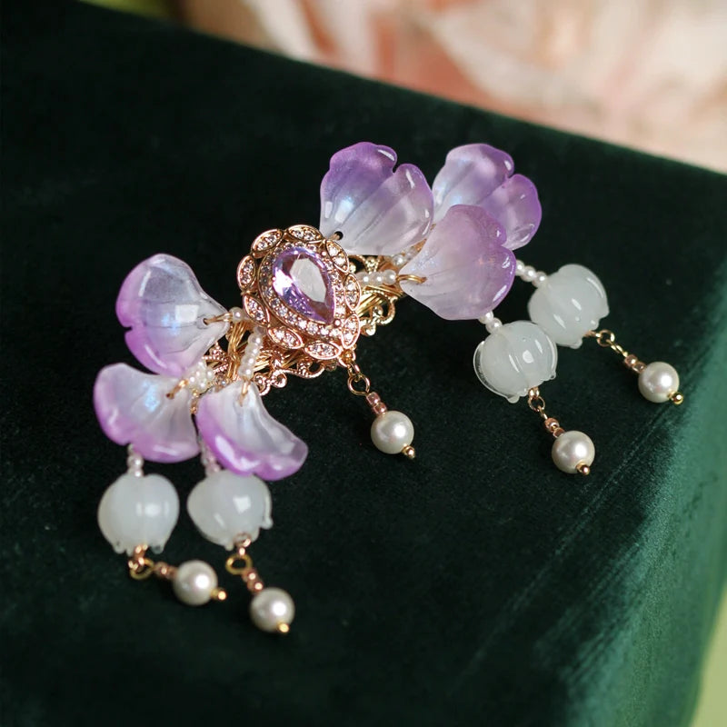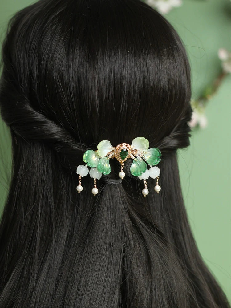 Hanfu hair accessories can vary widely in style, material, and design, but they all serve the purpose of enhancing the wearer's appearance and adding an extra touch of elegance to their hair. Some notable hair accessories commonly associated with Hanfu are hairpins (发簪, fāzān), hair combs (发篦, fābì), tassels (流苏, liúsū), hair ornaments (发髻, fājì), hairbands and headpieces (发饰, fāshì).