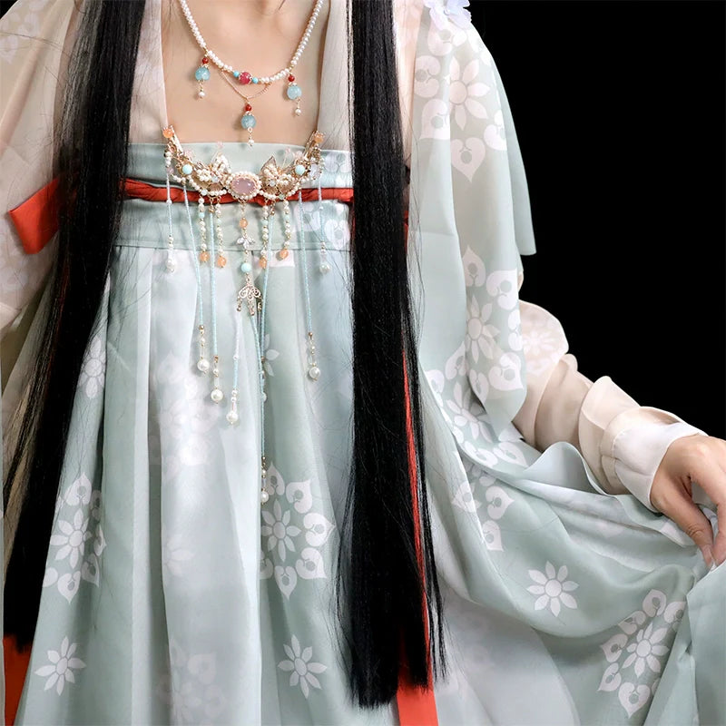 In traditional Hanfu culture, the hairstyle and the accompanying accessories are considered important elements that complete the overall look and reflect the wearer's social status, fashion sense, and personal style.