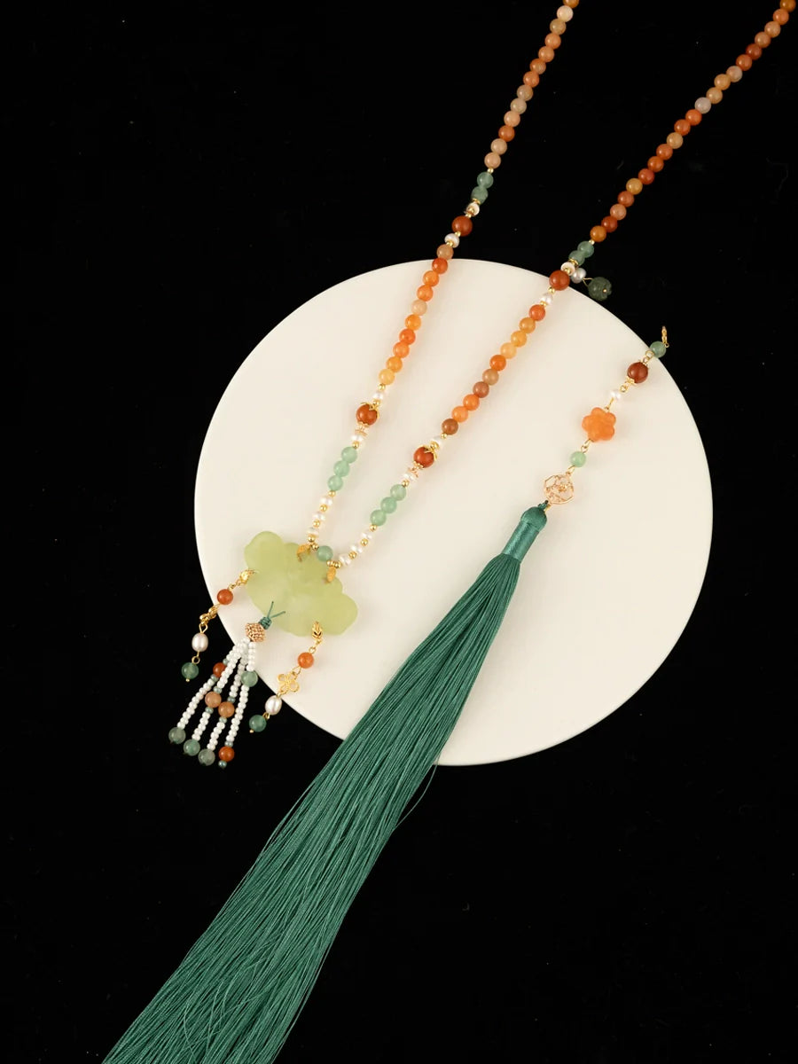 - Materials: Our necklaces are mainly made with soft color-preserving copper, freshwater pearls, red agate, flower charms, leaf charms, and tassels.