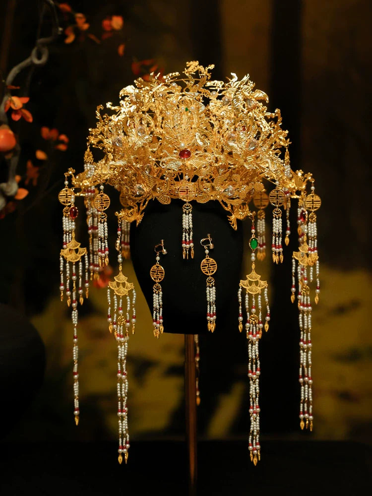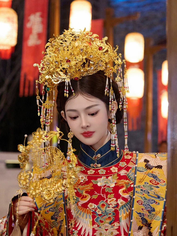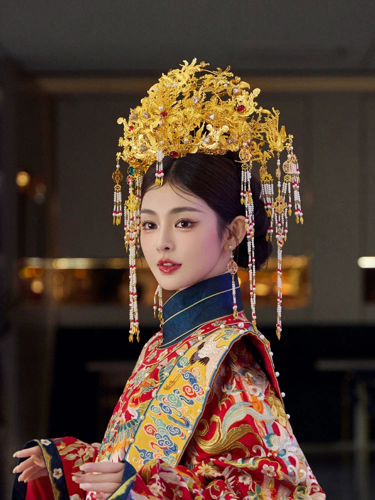 Complete your traditional Chinese wedding or tea ceremony look with our hair accessory sets, designed for brides. Each set features beautifully crafted hairpins, crowns, or headdresses, as shown in the photos, perfectly suited to complement your Hanfu, Cheongsam, or Qipao.