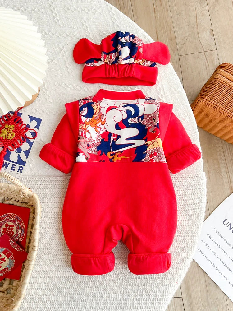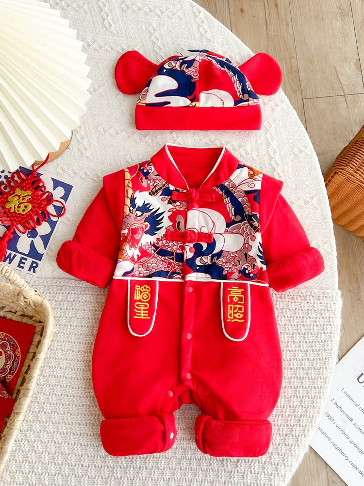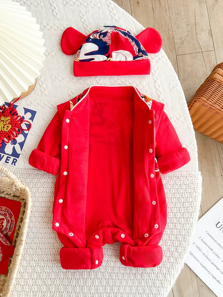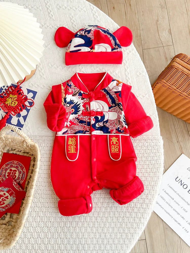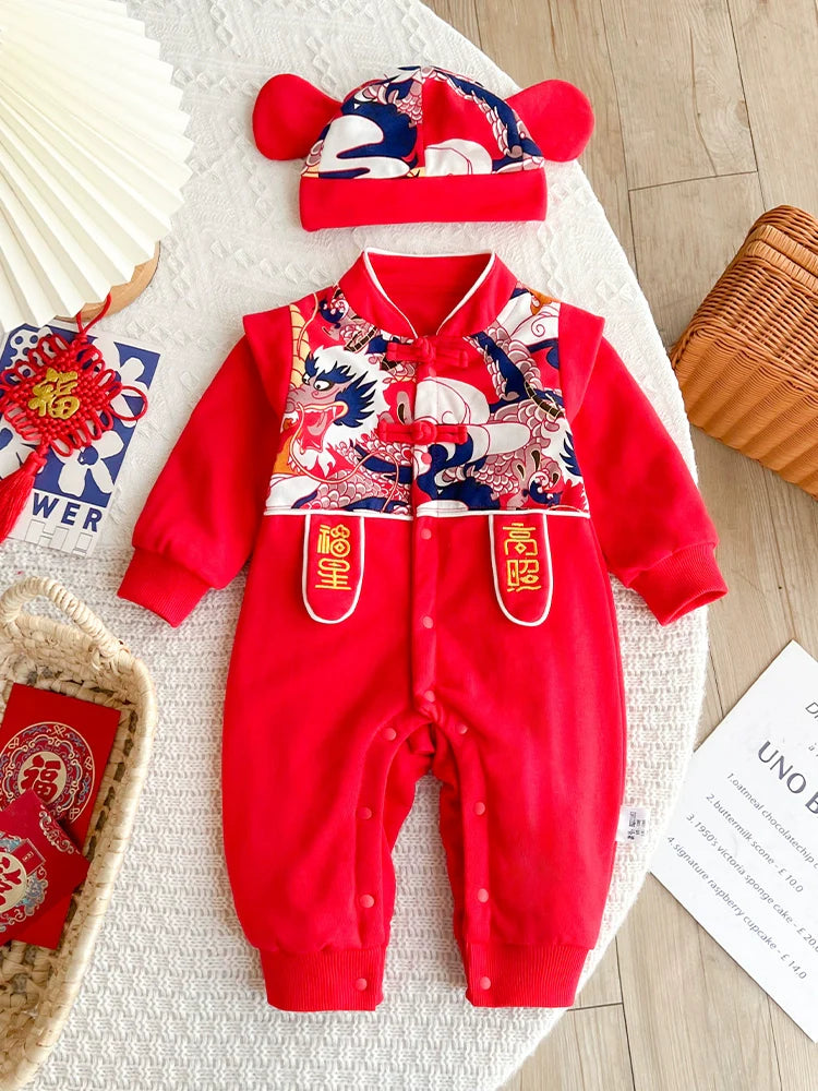 Our baby onesies combine traditional Chinese fashion with modern comfort, inspired by Hanfu and Cheongsam styles. Perfect for Chinese New Year, Mid-Autumn, and first birthdays.