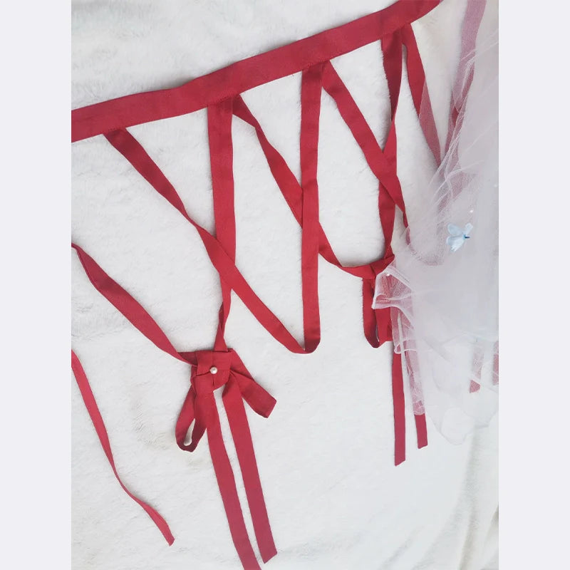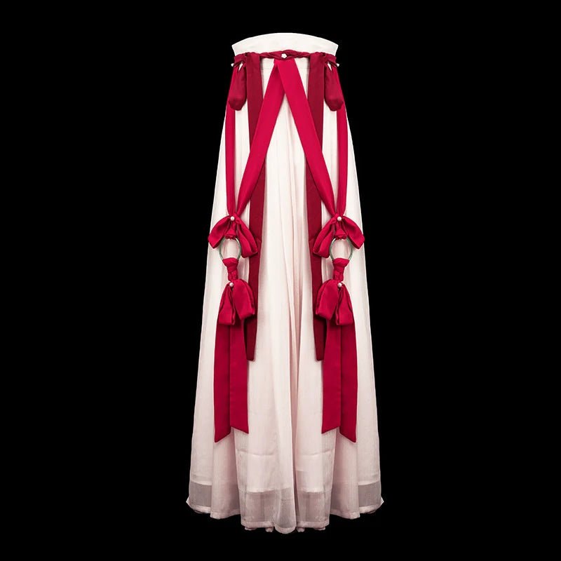 Crimson - Handmade Ribbon Tassel Waist Sash for Hanfu