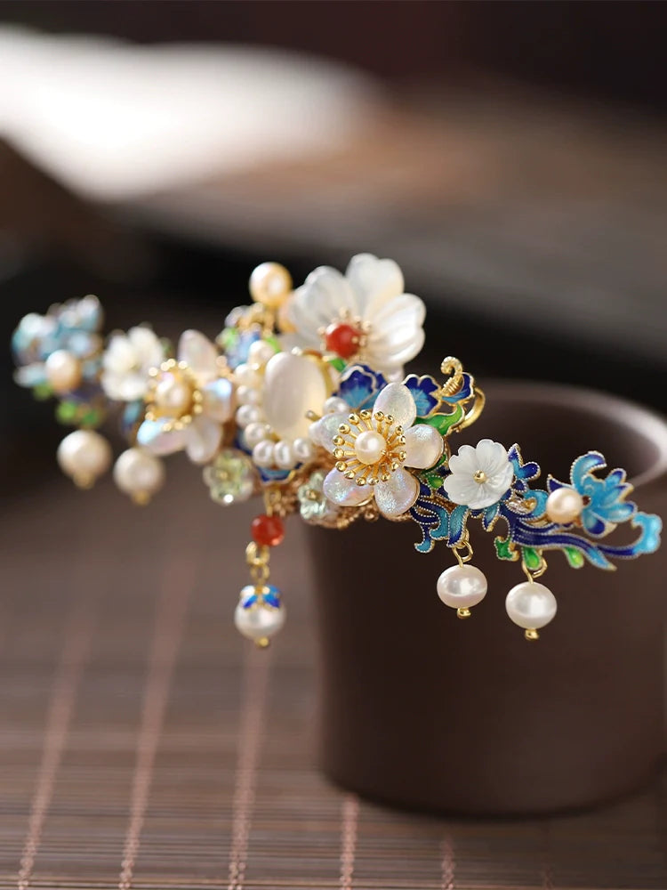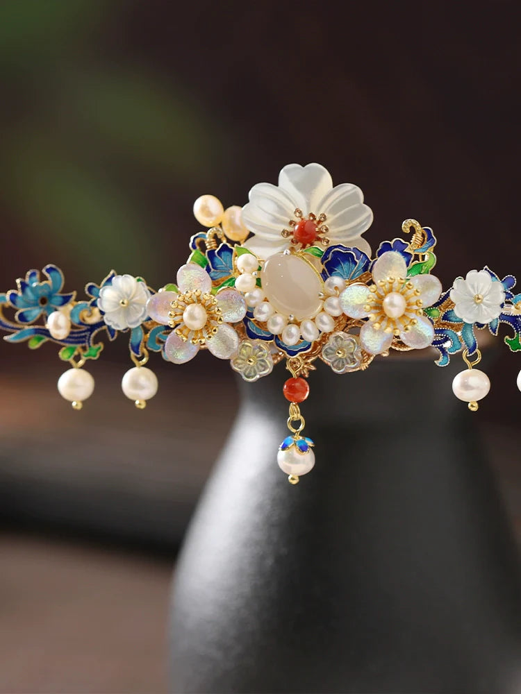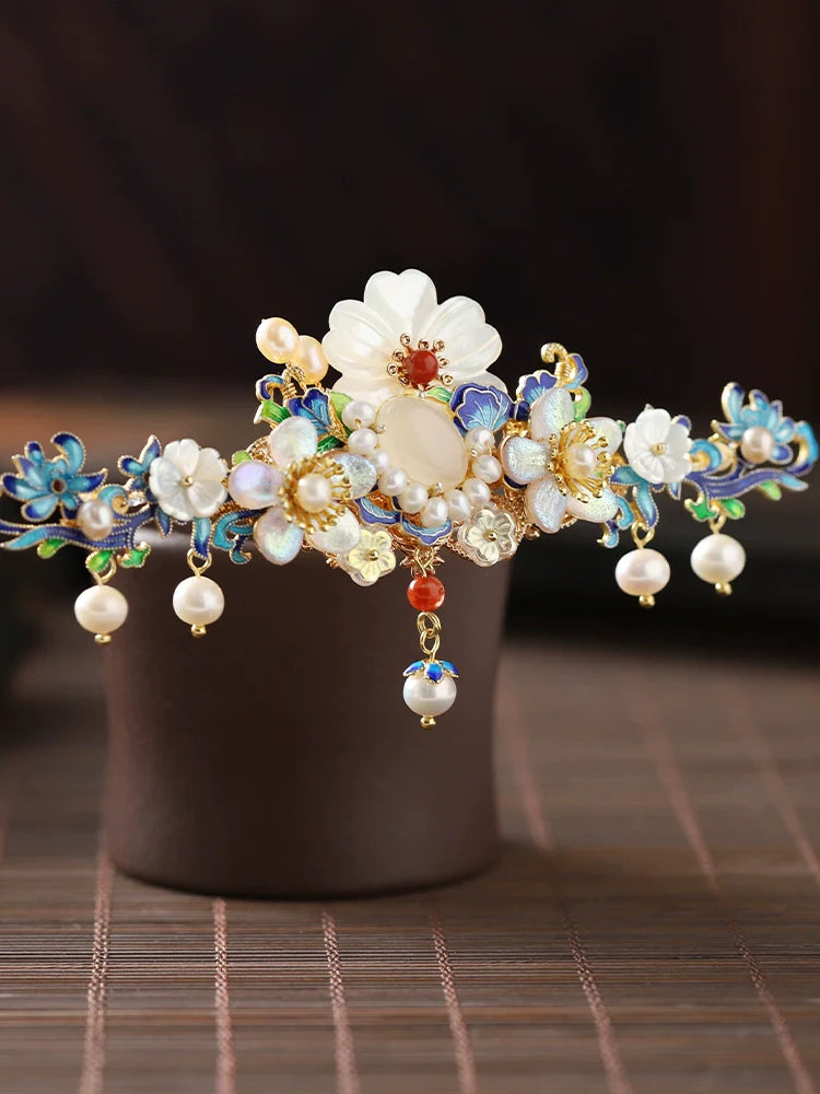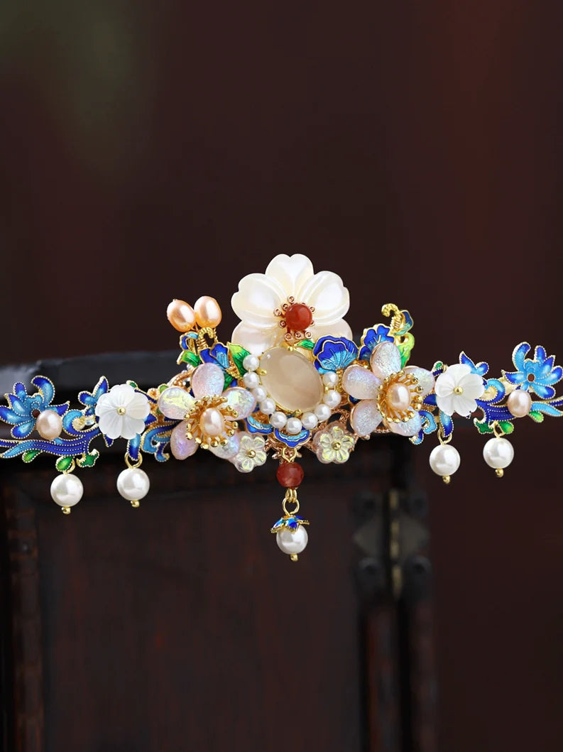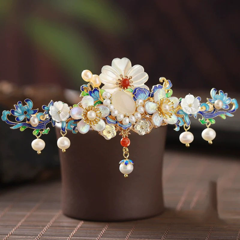 Hanfu hair accessories can vary widely in style, material, and design, but they all serve the purpose of enhancing the wearer's appearance and adding an extra touch of elegance to their hair. Some notable hair accessories commonly associated with Hanfu are hairpins (发簪, fāzān), hair combs (发篦, fābì), tassels (流苏, liúsū), hair ornaments (发髻, fājì), hairbands and headpieces (发饰, fāshì).