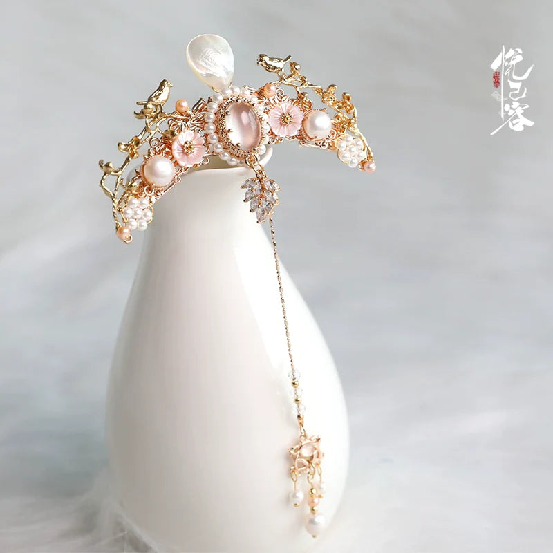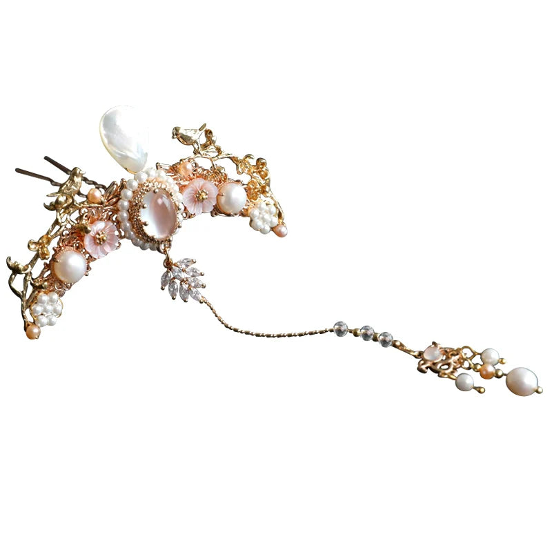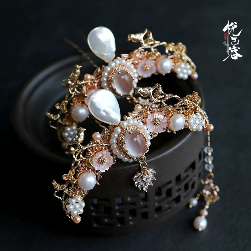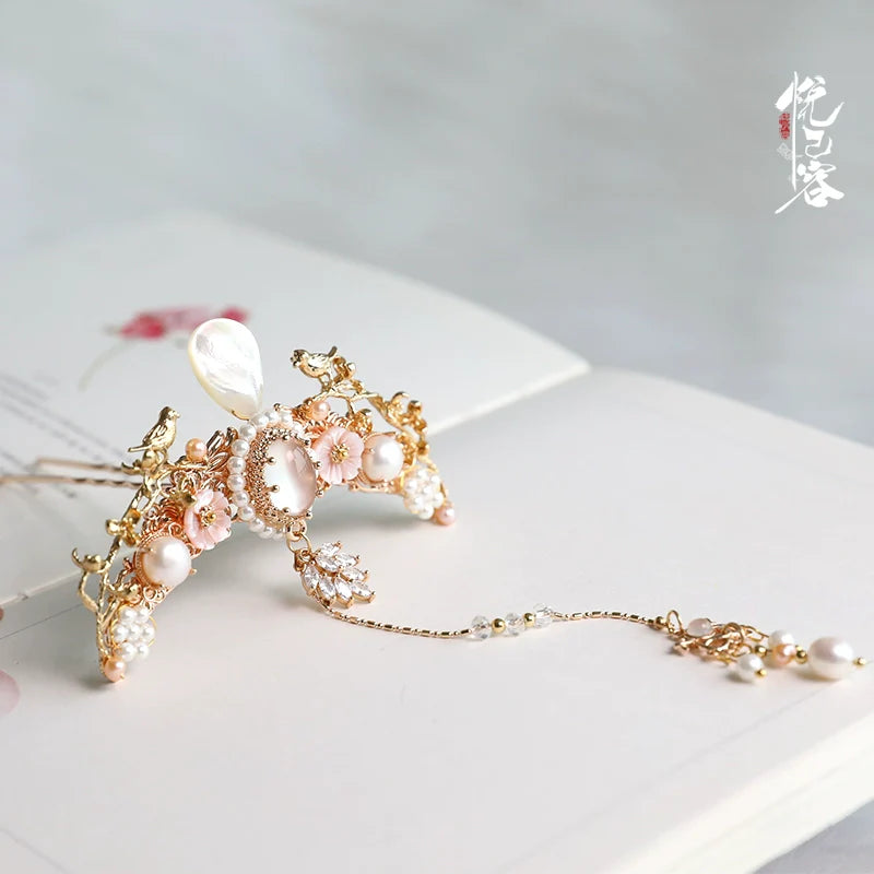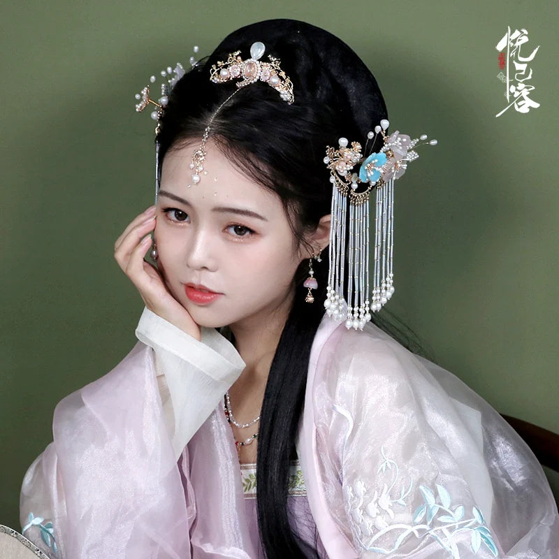 Hanfu hair accessories can vary widely in style, material, and design, but they all serve the purpose of enhancing the wearer's appearance and adding an extra touch of elegance to their hair. Some notable hair accessories commonly associated with Hanfu are hairpins (发簪, fāzān), hair combs (发篦, fābì), tassels (流苏, liúsū), hair ornaments (发髻, fājì), hairbands and headpieces (发饰, fāshì).