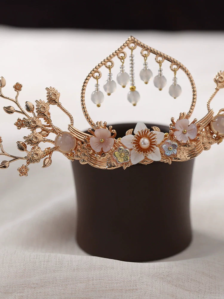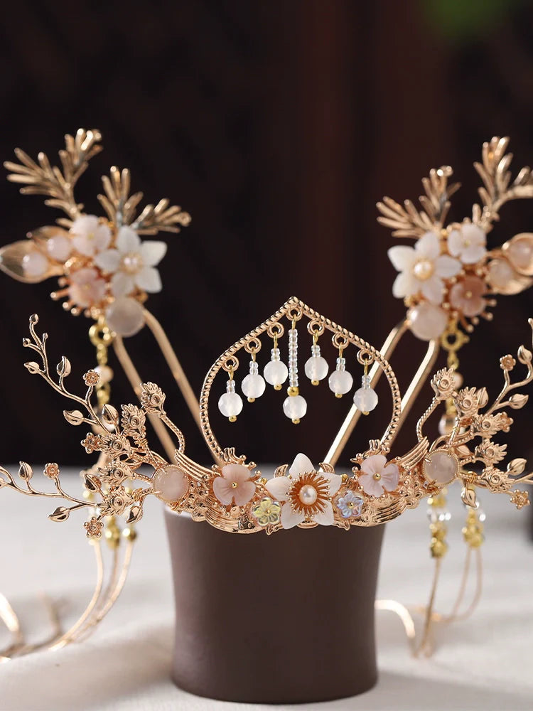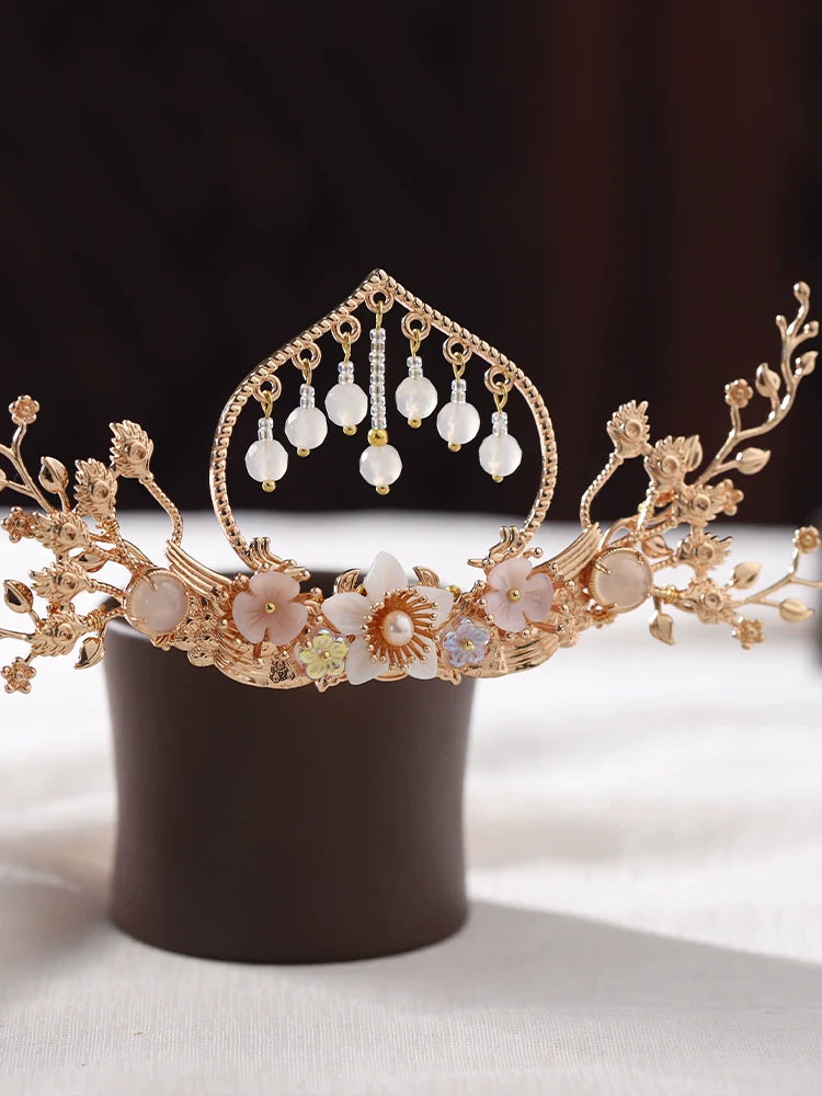 Hanfu hair accessories can vary widely in style, material, and design, but they all serve the purpose of enhancing the wearer's appearance and adding an extra touch of elegance to their hair. Some notable hair accessories commonly associated with Hanfu are hairpins (发簪, fāzān), hair combs (发篦, fābì), tassels (流苏, liúsū), hair ornaments (发髻, fājì), hairbands and headpieces (发饰, fāshì).