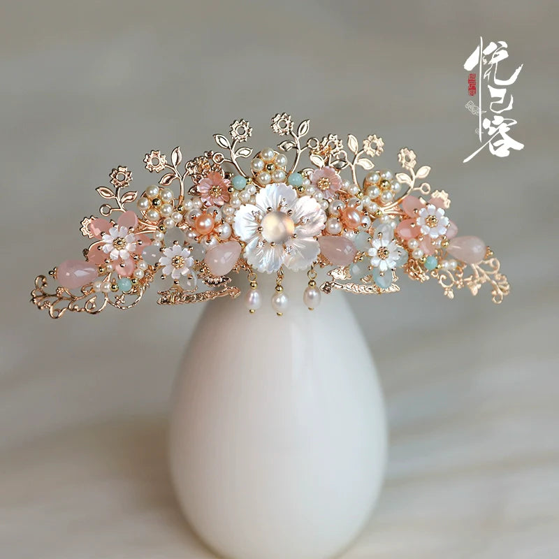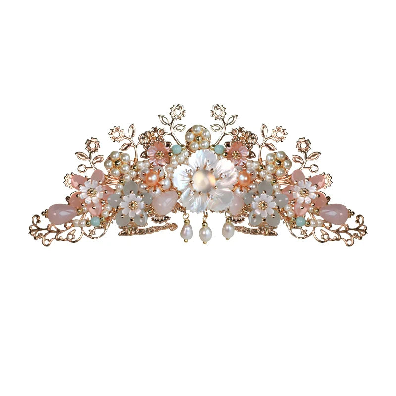 Hanfu hair accessories can vary widely in style, material, and design, but they all serve the purpose of enhancing the wearer's appearance and adding an extra touch of elegance to their hair. Some notable hair accessories commonly associated with Hanfu are hairpins (发簪, fāzān), hair combs (发篦, fābì), tassels (流苏, liúsū), hair ornaments (发髻, fājì), hairbands and headpieces (发饰, fāshì).