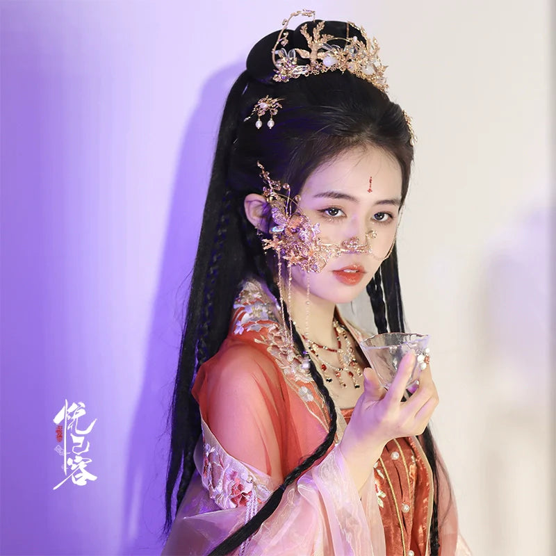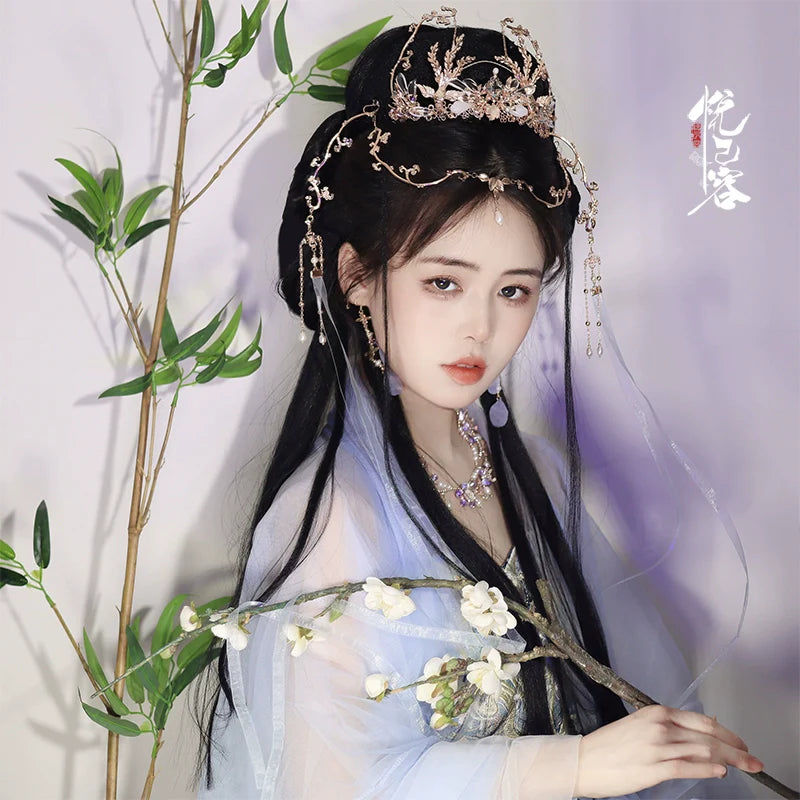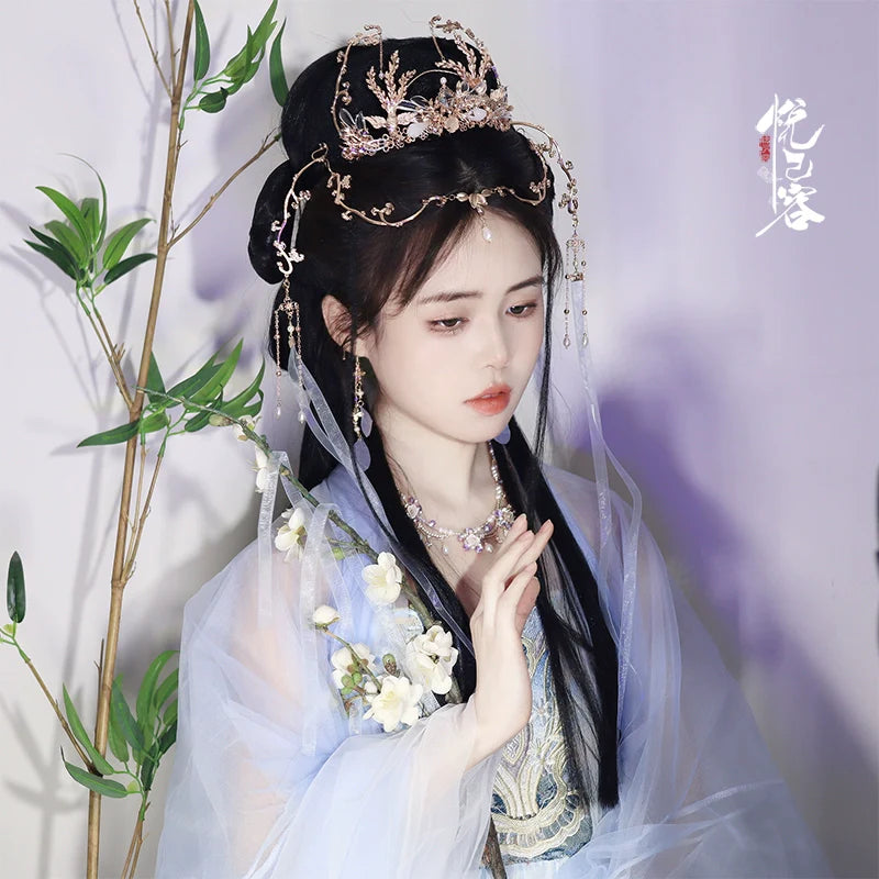 In traditional Hanfu culture, the hairstyle and the accompanying accessories are considered important elements that complete the overall look and reflect the wearer's social status, fashion sense, and personal style.