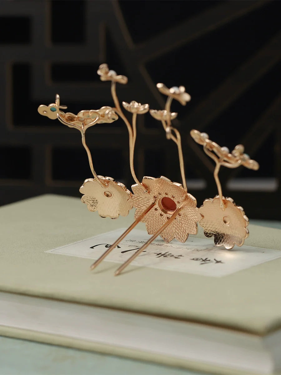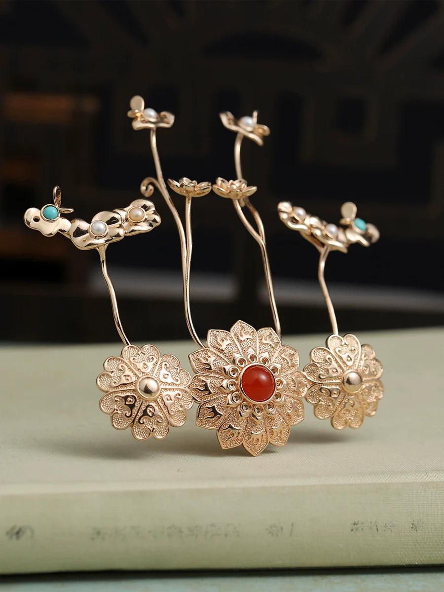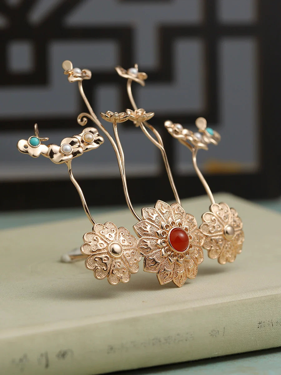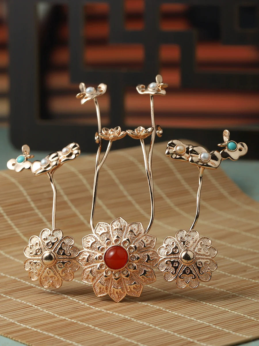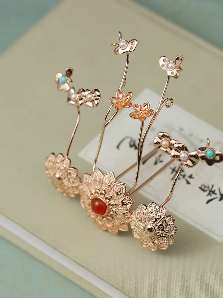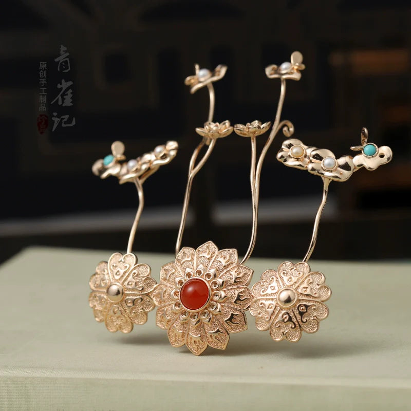Hanfu hair accessories can vary widely in style, material, and design, but they all serve the purpose of enhancing the wearer's appearance and adding an extra touch of elegance to their hair. Some notable hair accessories commonly associated with Hanfu are hairpins (发簪, fāzān), hair combs (发篦, fābì), tassels (流苏, liúsū), hair ornaments (发髻, fājì), hairbands and headpieces (发饰, fāshì).