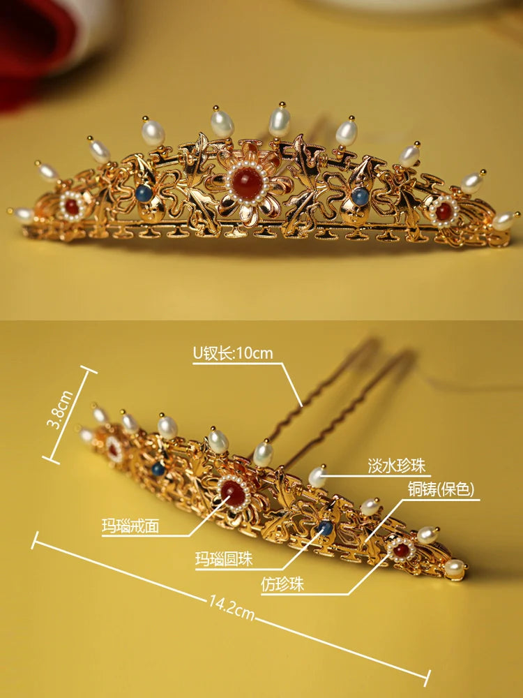 Hanfu hair accessories can vary widely in style, material, and design, but they all serve the purpose of enhancing the wearer's appearance and adding an extra touch of elegance to their hair. Some notable hair accessories commonly associated with Hanfu are hairpins (发簪, fāzān), hair combs (发篦, fābì), tassels (流苏, liúsū), hair ornaments (发髻, fājì), hairbands and headpieces (发饰, fāshì).