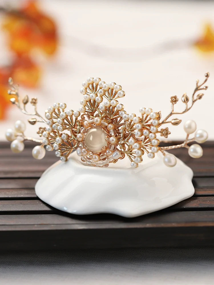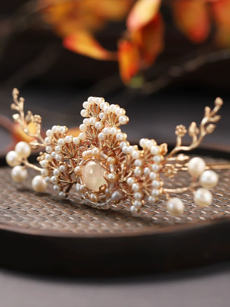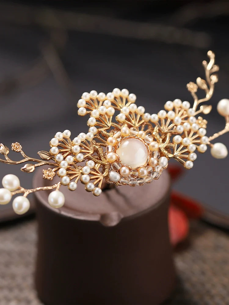 Hanfu hair accessories can vary widely in style, material, and design, but they all serve the purpose of enhancing the wearer's appearance and adding an extra touch of elegance to their hair. Some notable hair accessories commonly associated with Hanfu are hairpins (发簪, fāzān), hair combs (发篦, fābì), tassels (流苏, liúsū), hair ornaments (发髻, fājì), hairbands and headpieces (发饰, fāshì).