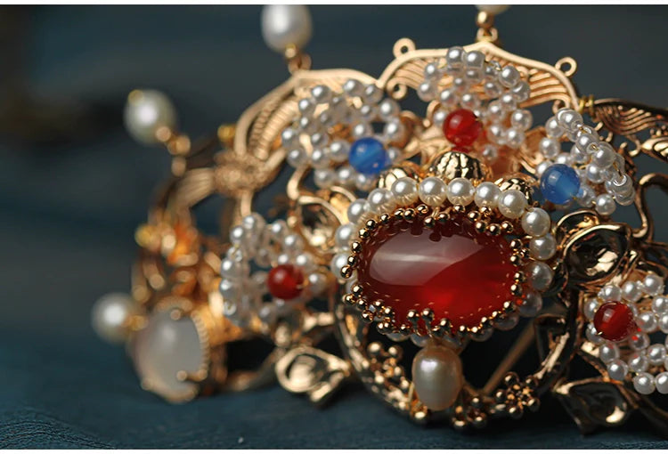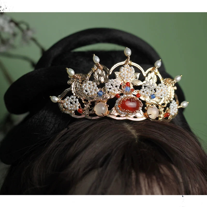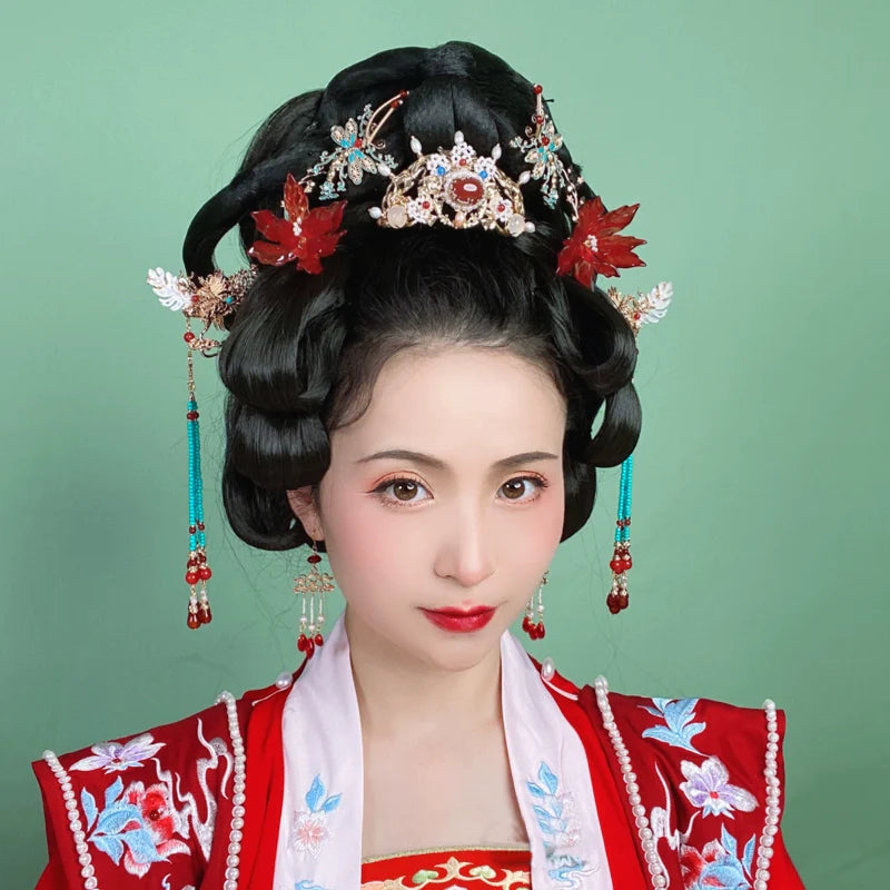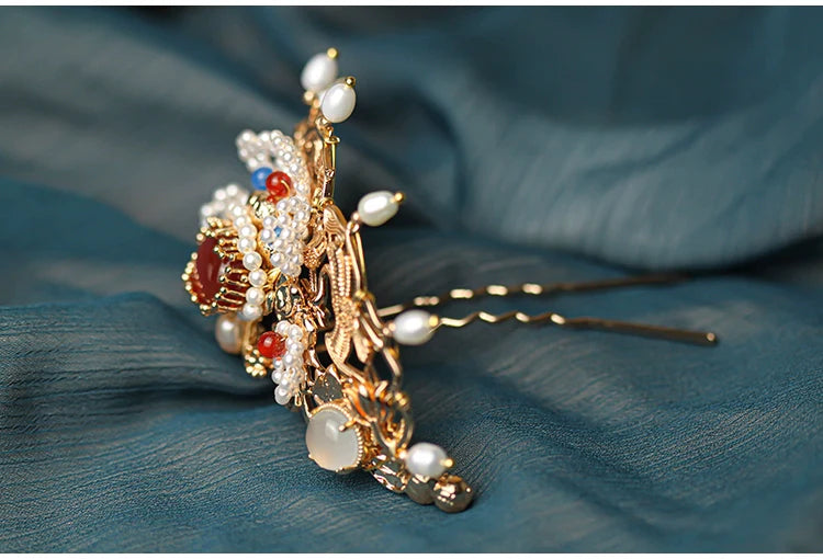 Hanfu hair accessories can vary widely in style, material, and design, but they all serve the purpose of enhancing the wearer's appearance and adding an extra touch of elegance to their hair. Some notable hair accessories commonly associated with Hanfu are hairpins (发簪, fāzān), hair combs (发篦, fābì), tassels (流苏, liúsū), hair ornaments (发髻, fājì), hairbands and headpieces (发饰, fāshì).