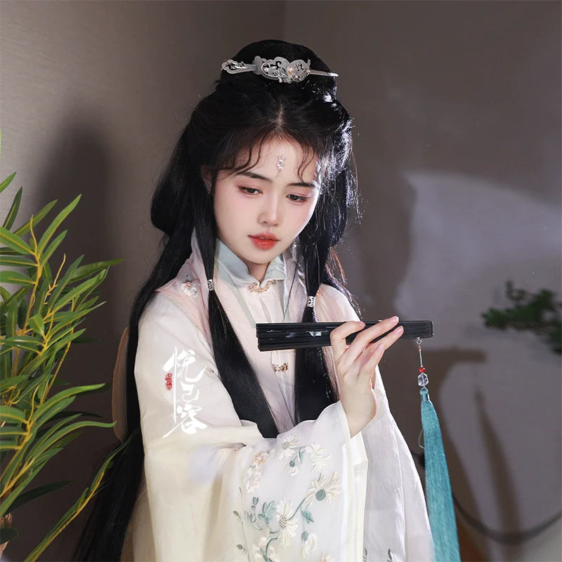In traditional Hanfu culture, the hairstyle and the accompanying accessories are considered important elements that complete the overall look and reflect the wearer's social status, fashion sense, and personal style.