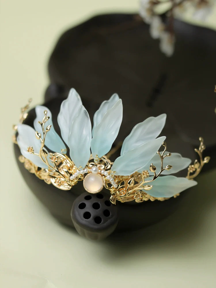 Hanfu hair accessories can vary widely in style, material, and design, but they all serve the purpose of enhancing the wearer's appearance and adding an extra touch of elegance to their hair. Some notable hair accessories commonly associated with Hanfu are hairpins (发簪, fāzān), hair combs (发篦, fābì), tassels (流苏, liúsū), hair ornaments (发髻, fājì), hairbands and headpieces (发饰, fāshì).