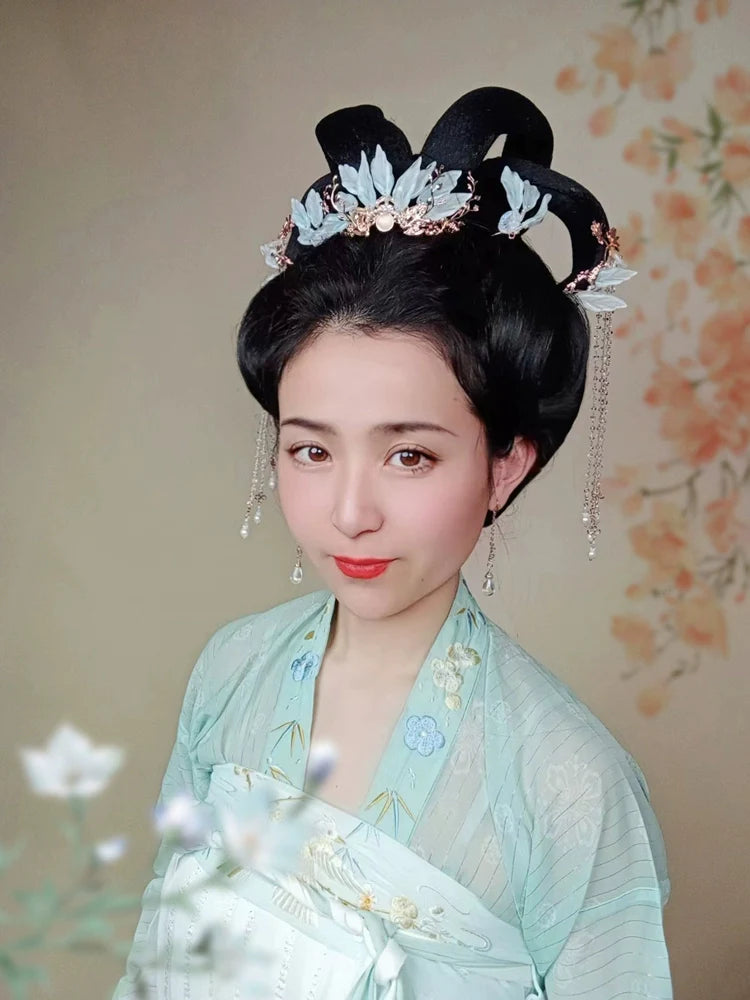In traditional Hanfu culture, the hairstyle and the accompanying accessories are considered important elements that complete the overall look and reflect the wearer's social status, fashion sense, and personal style.