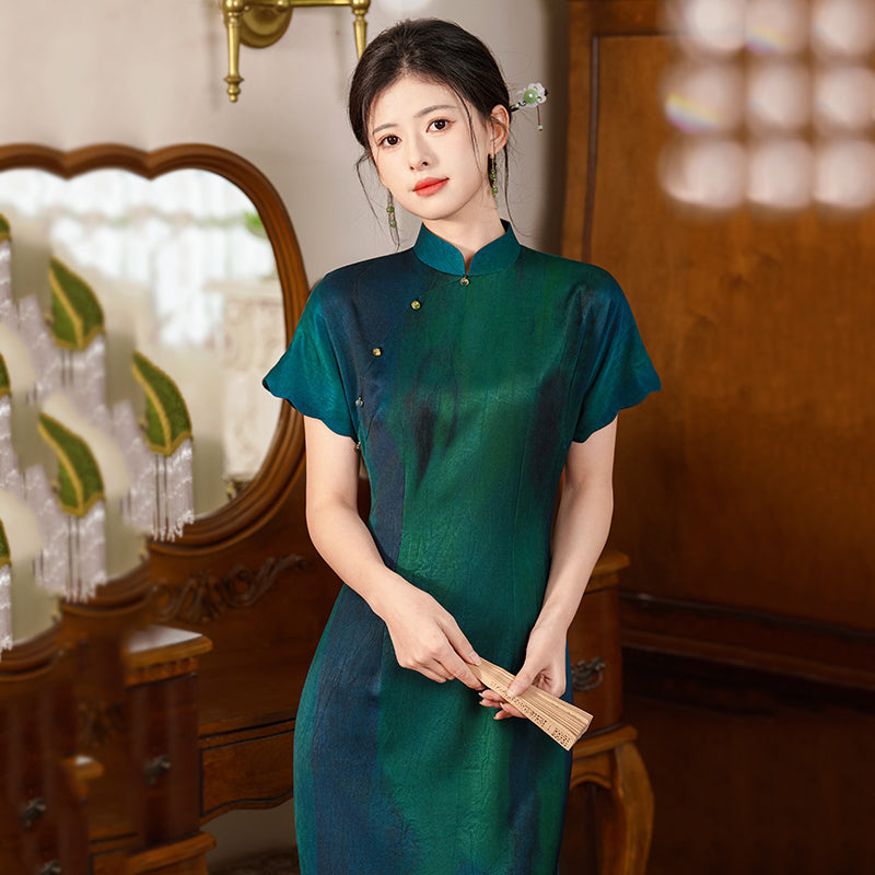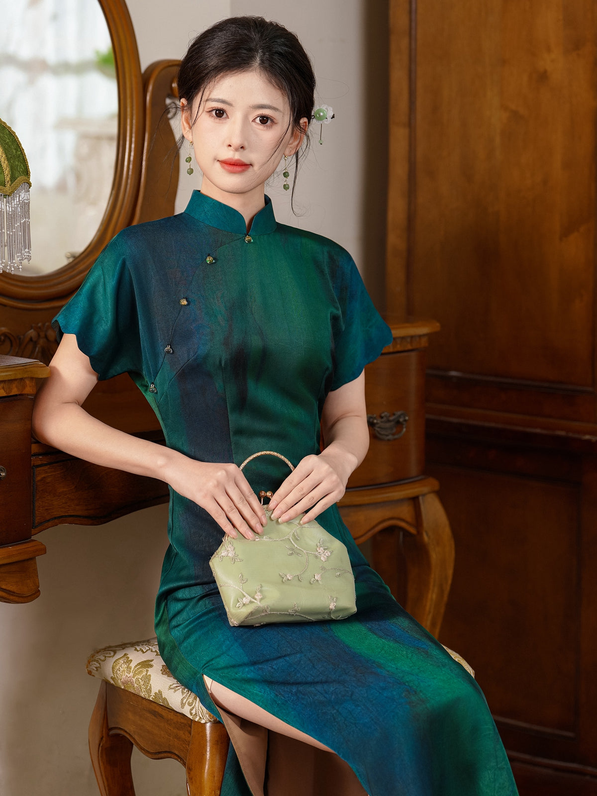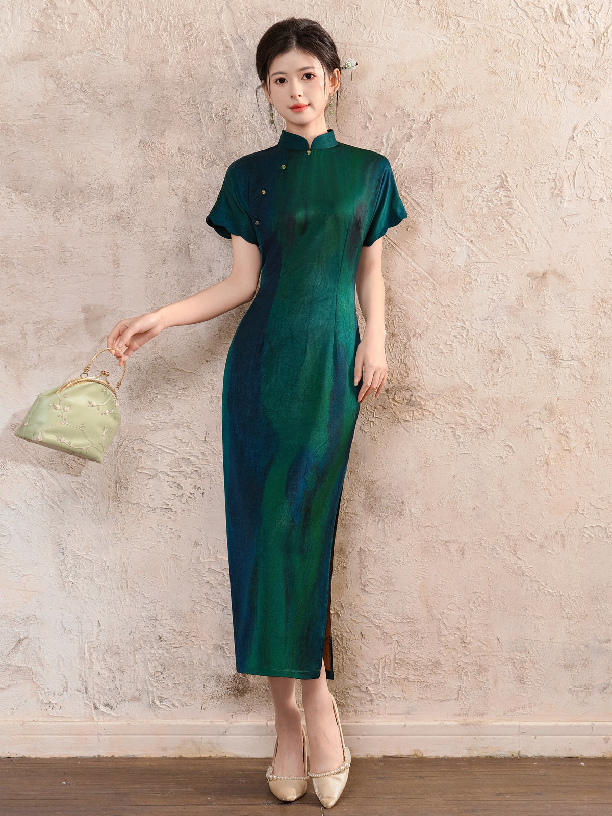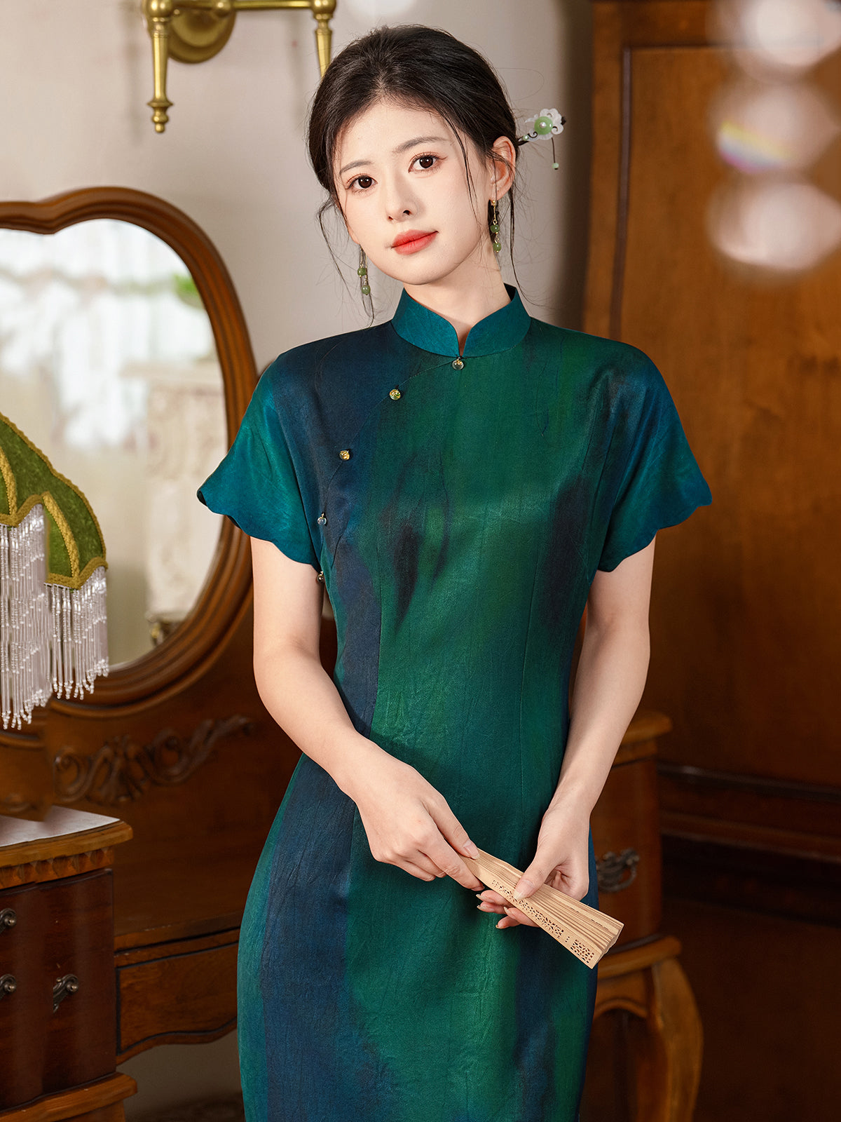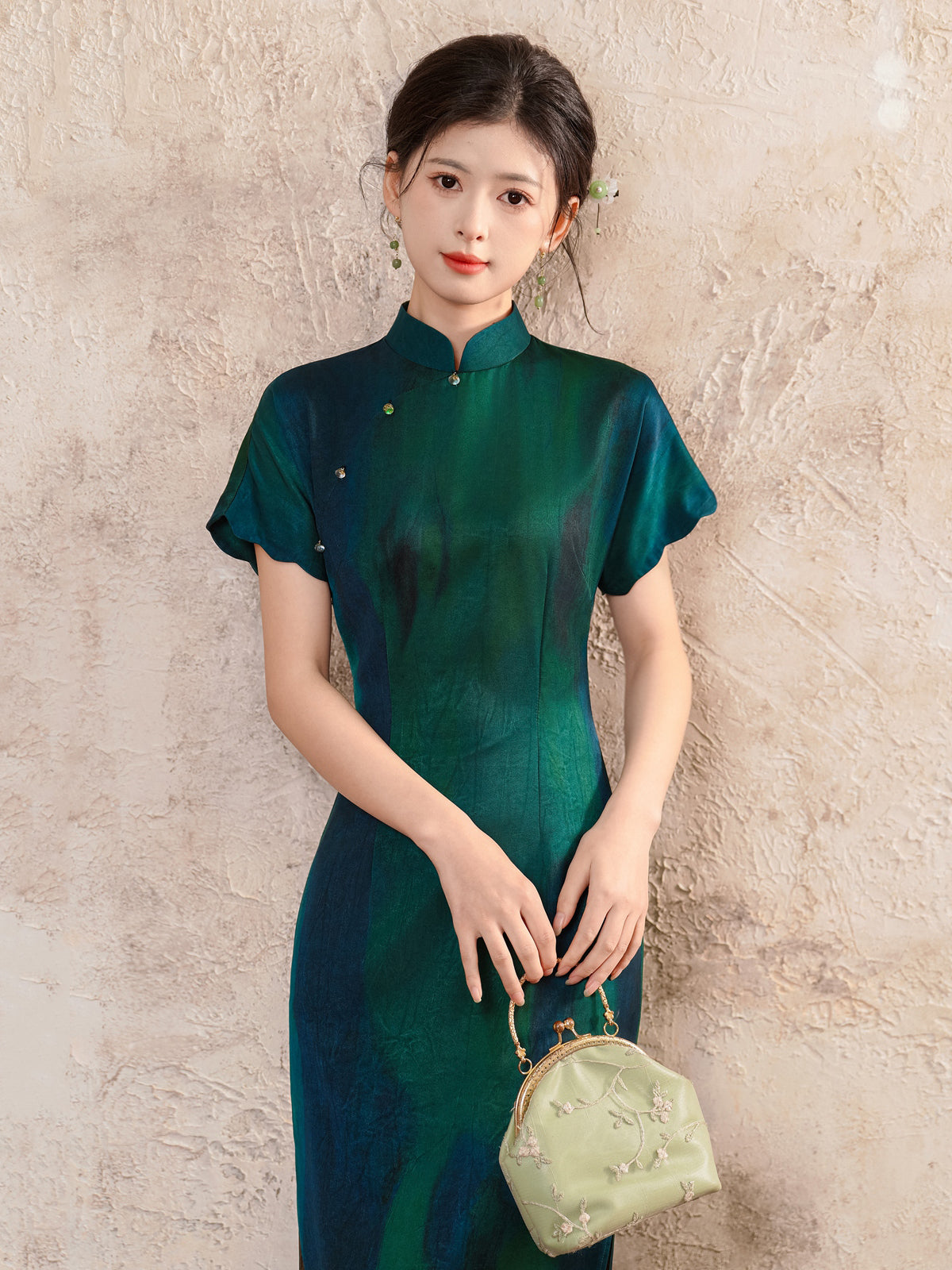 Cui Ying 翠影 - Scallop Sleeve Aurora Inspired Long Cheongsam