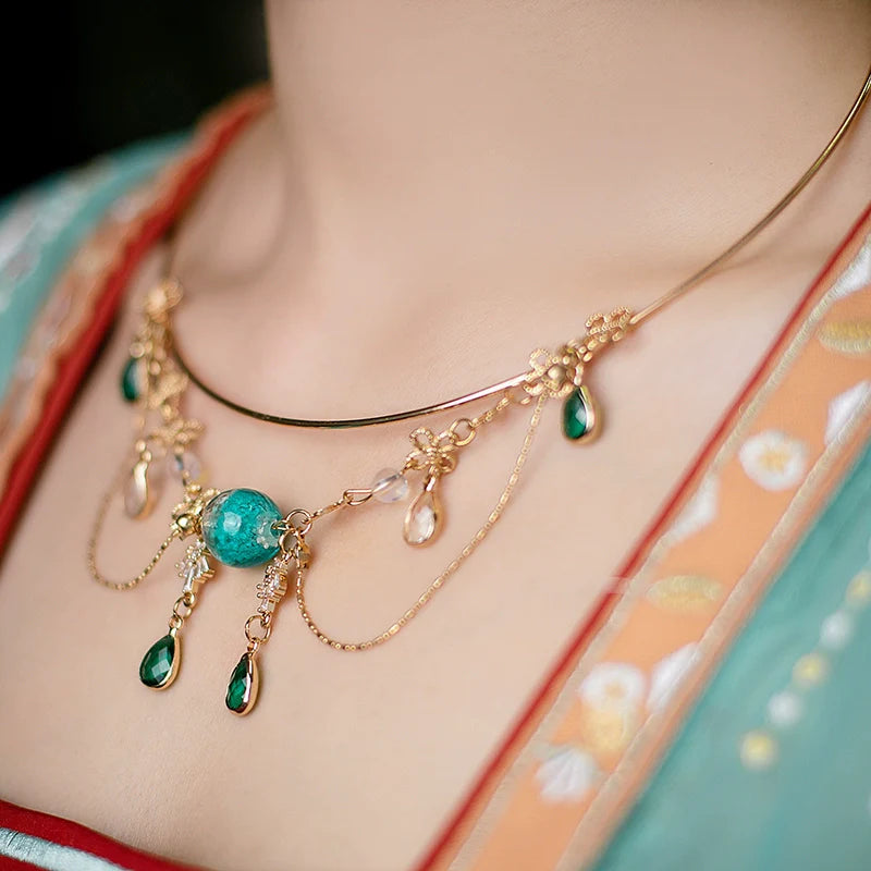 Traditional and modern Chinese-style accessories and costume jewelry, including necklaces, yingluo, and bracelets, perfect for pairing with Hanfu, Cheongsam, and Qipao.