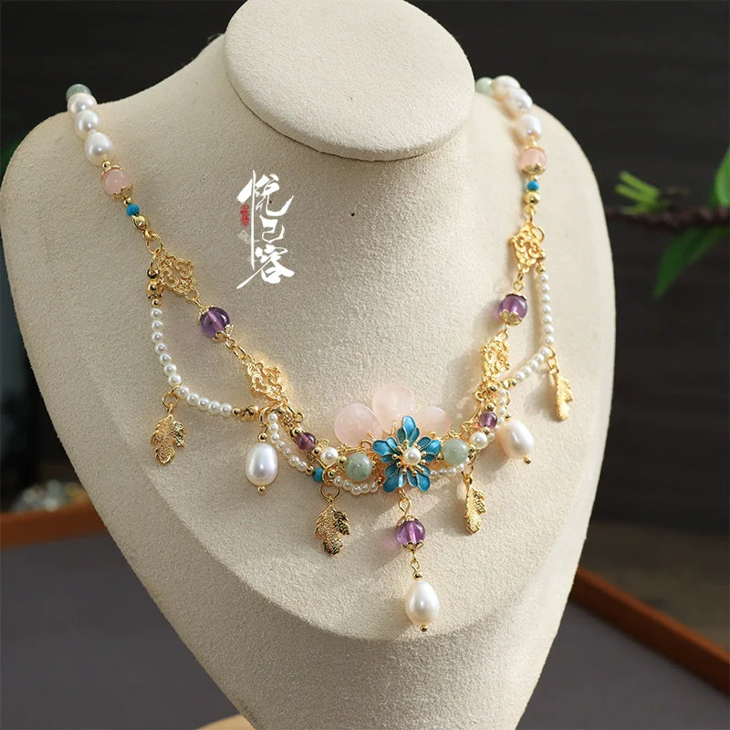 Traditional and modern Chinese-style accessories and costume jewelry, including necklaces, yingluo, and bracelets, perfect for pairing with Hanfu, Cheongsam, and Qipao.