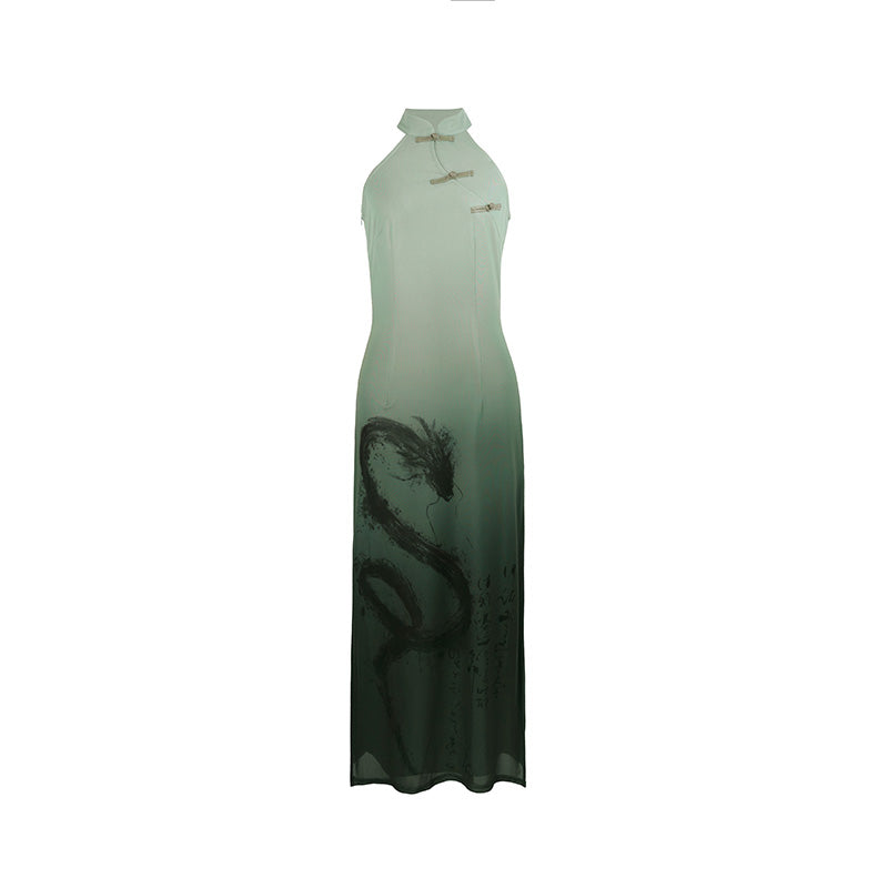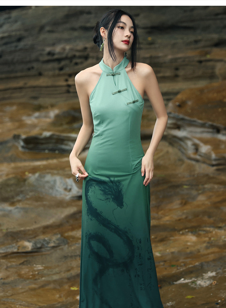 Dragonia - Women's Summer New Chinese Style Halter Neck Cheongsam Dress