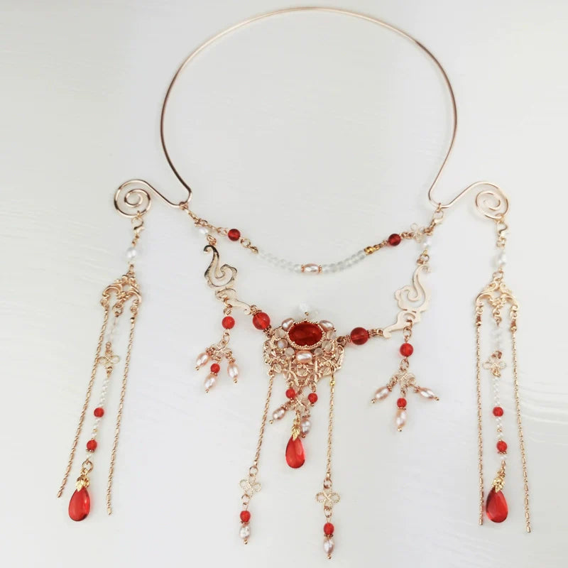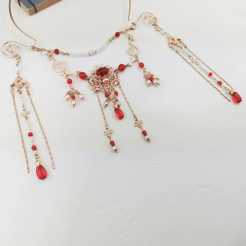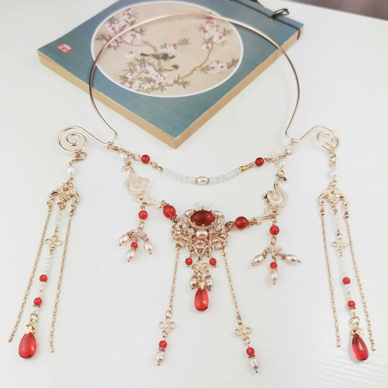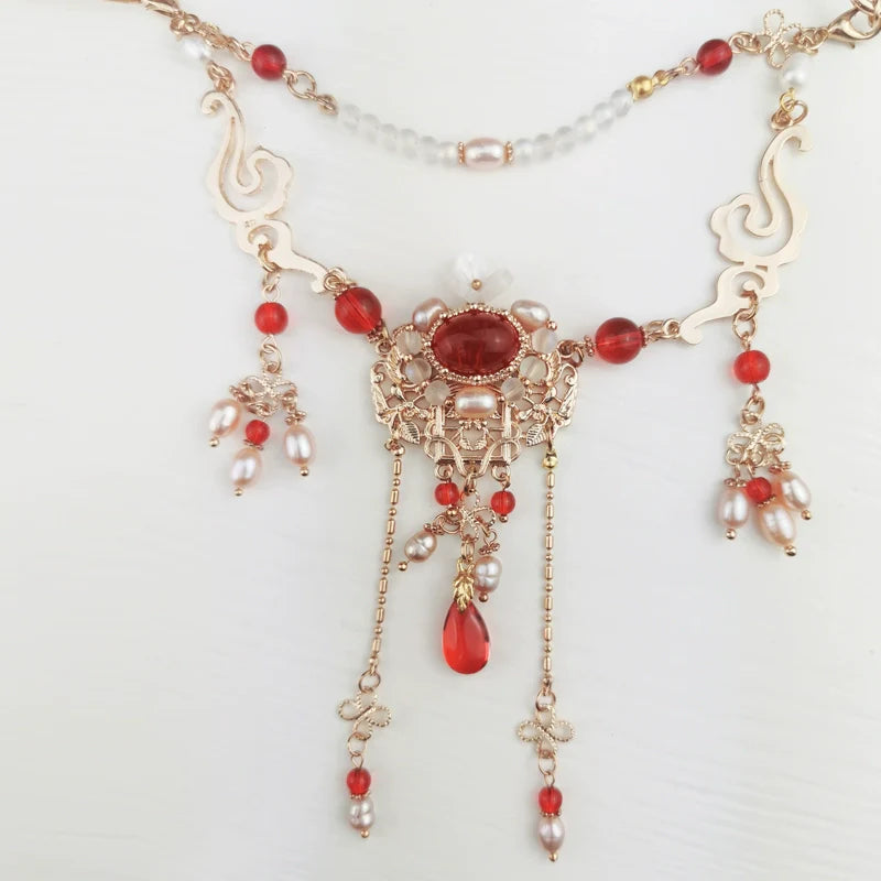 Traditional and modern Chinese-style accessories and costume jewelry, including necklaces, yingluo, and bracelets, perfect for pairing with Hanfu, Cheongsam, and Qipao.