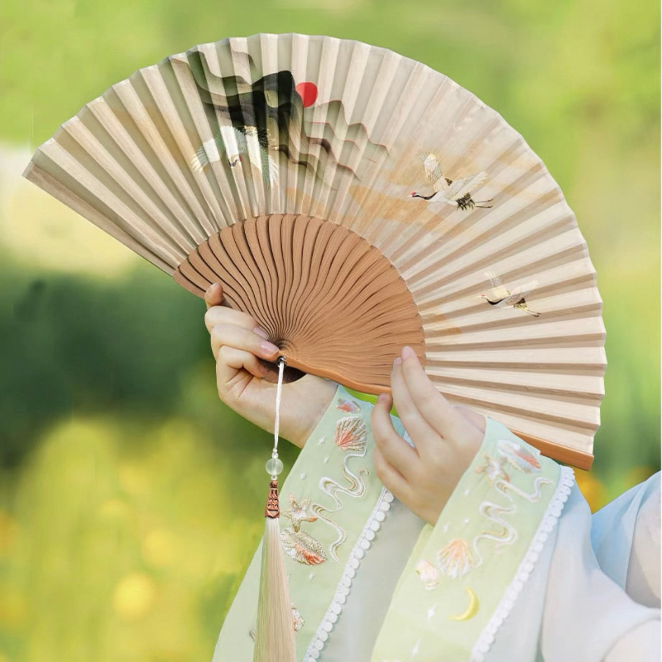 Pair your traditional Chinese Clothing, Hanfu, Qipao, or Cheongsam dresses with our folding fans. Inspired by Song Dynasty artistry, these hand fans are crafted from bamboo, some with embroidery reflecting the charm of East Asia. Perfect for cooling, gifting, or accessorizing.
