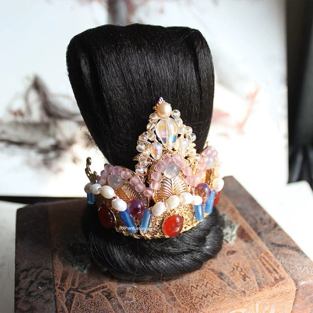 In traditional Hanfu culture, the hairstyle and the accompanying accessories are considered important elements that complete the overall look and reflect the wearer's social status, fashion sense, and personal style.