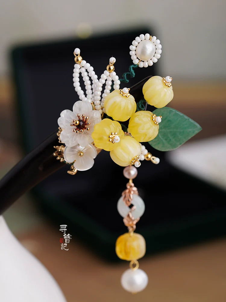 Hanfu hair accessories can vary widely in style, material, and design, but they all serve the purpose of enhancing the wearer's appearance and adding an extra touch of elegance to their hair. Some notable hair accessories commonly associated with Hanfu are hairpins (发簪, fāzān), hair combs (发篦, fābì), tassels (流苏, liúsū), hair ornaments (发髻, fājì), hairbands and headpieces (发饰, fāshì).
