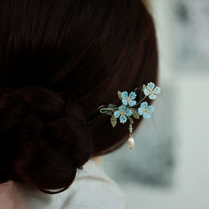Hanfu hair accessories can vary widely in style, material, and design, but they all serve the purpose of enhancing the wearer's appearance and adding an extra touch of elegance to their hair. Some notable hair accessories commonly associated with Hanfu are hairpins (发簪, fāzān), hair combs (发篦, fābì), tassels (流苏, liúsū), hair ornaments (发髻, fājì), hairbands and headpieces (发饰, fāshì).