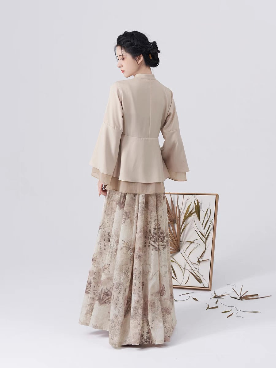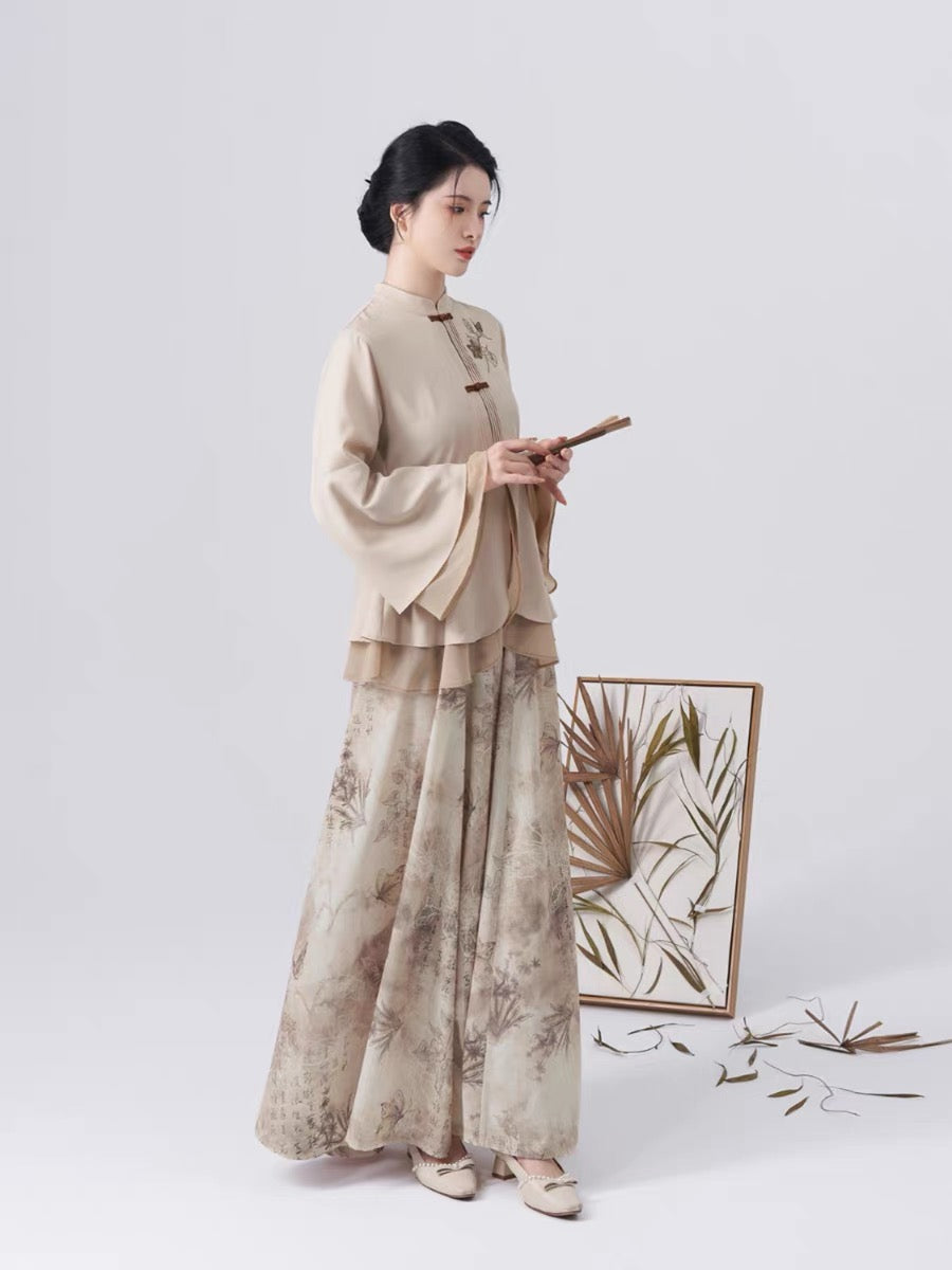 Fall Calligraphy Modern Chinese Cheongsam Matching Set