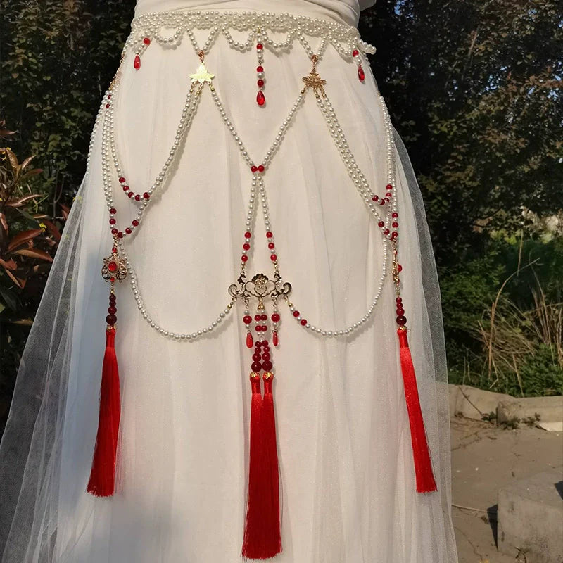Complete your look with our Dunhuang-style beaded waist chains. Whether you're dressing for a festival, performance, cosplay, or special event, these waist accessories double as belts and accentuate your silhouette and adds a charm to Hanfu, traditional costumes, or cultural attire.