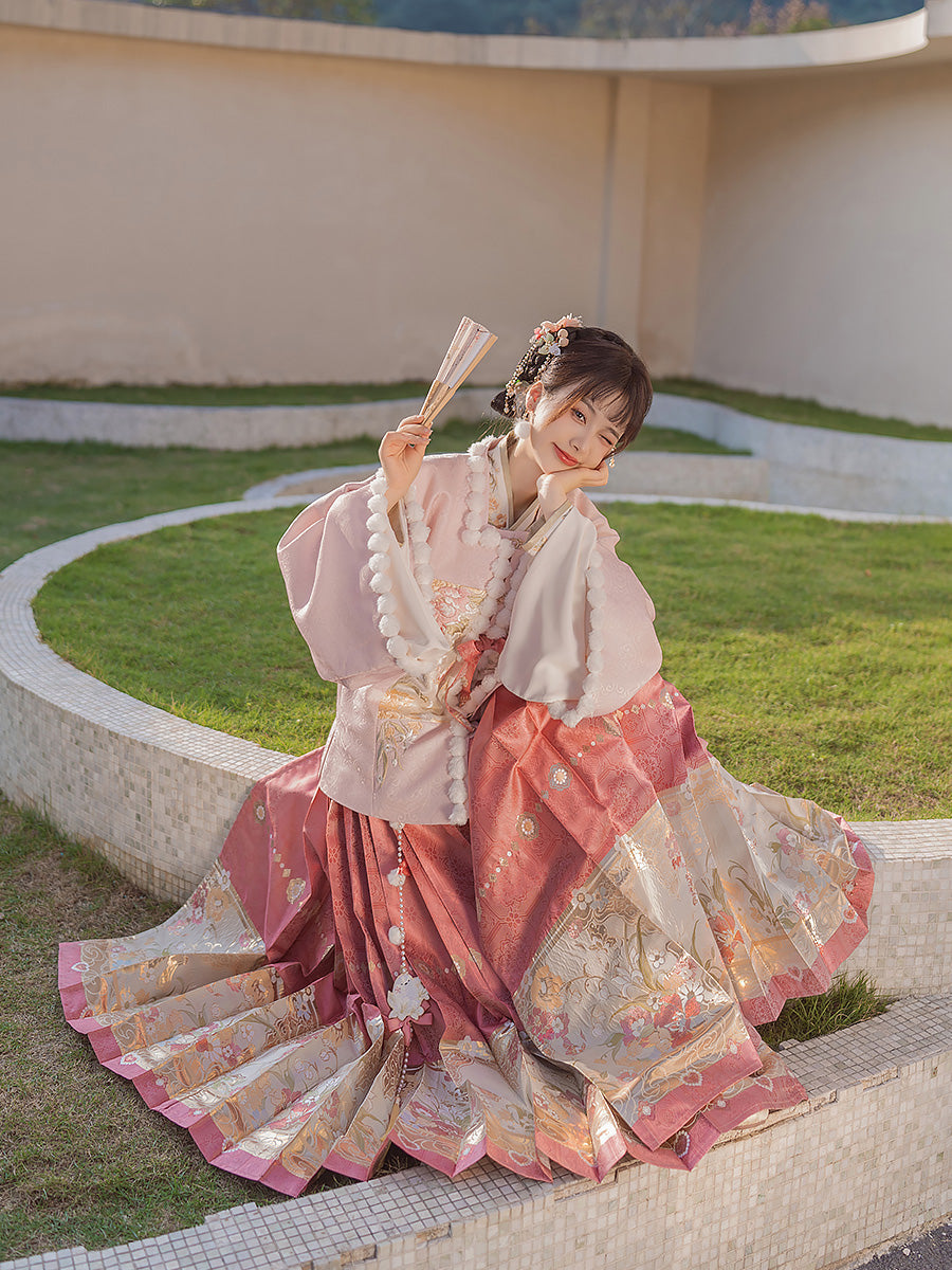 Flower Banquet 团花小宴 - Pipa Sleeve Top & Mamianqun Ming Dynasty Hanfu Set