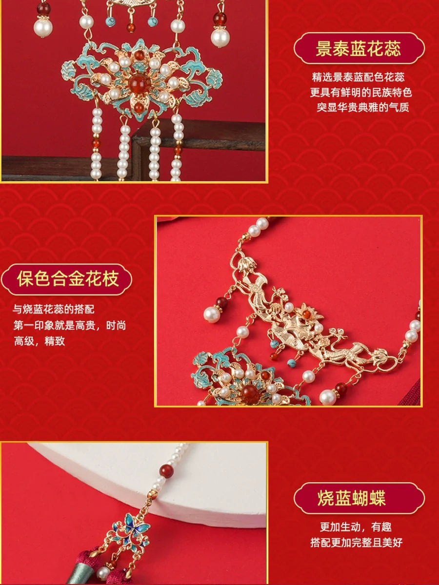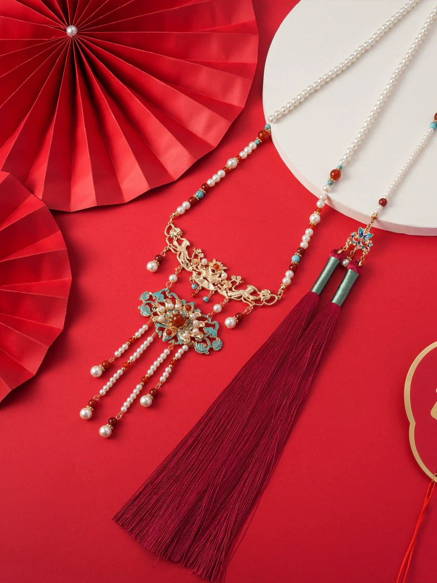 Traditional and modern Chinese-style accessories and costume jewelry, including necklaces, yingluo, and bracelets, perfect for pairing with Hanfu, Cheongsam, and Qipao.